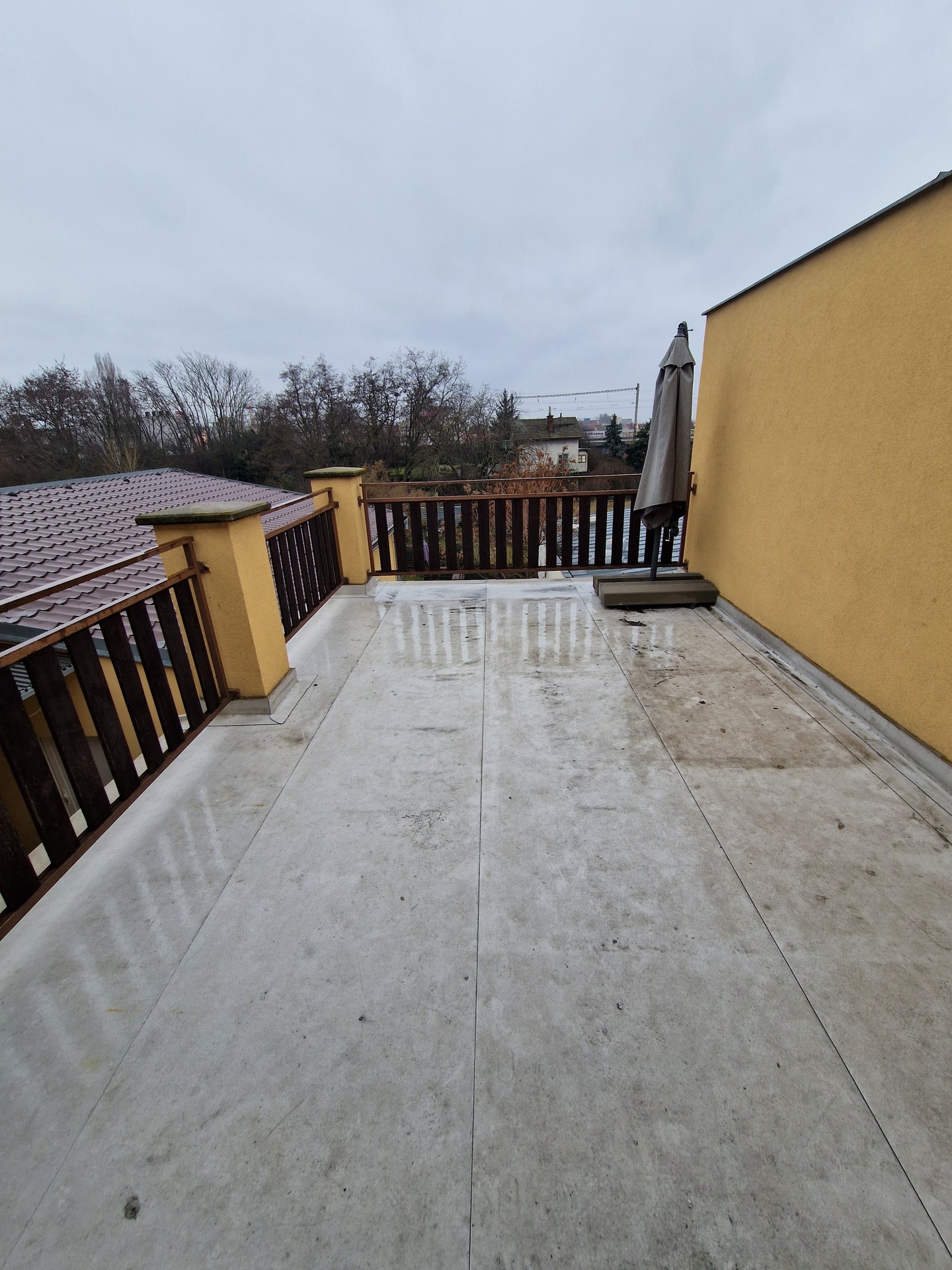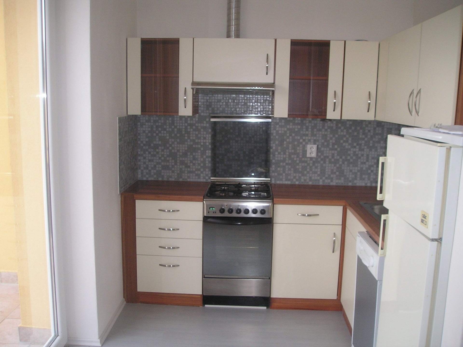 Nabízí se nevybaven, jen kuchyňská linka, trouba, indukční deska, lednice a pračka.