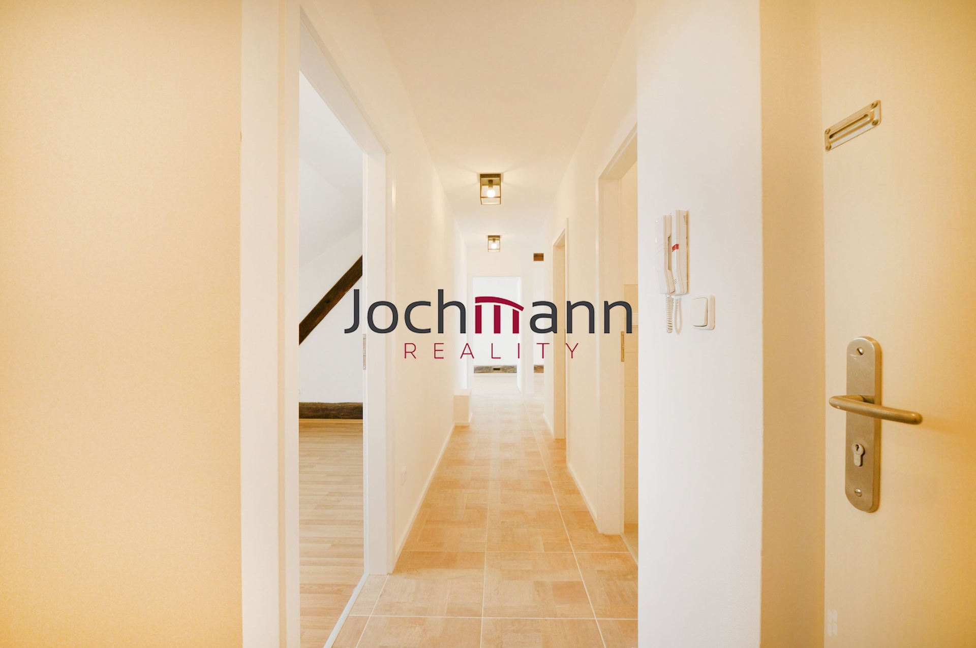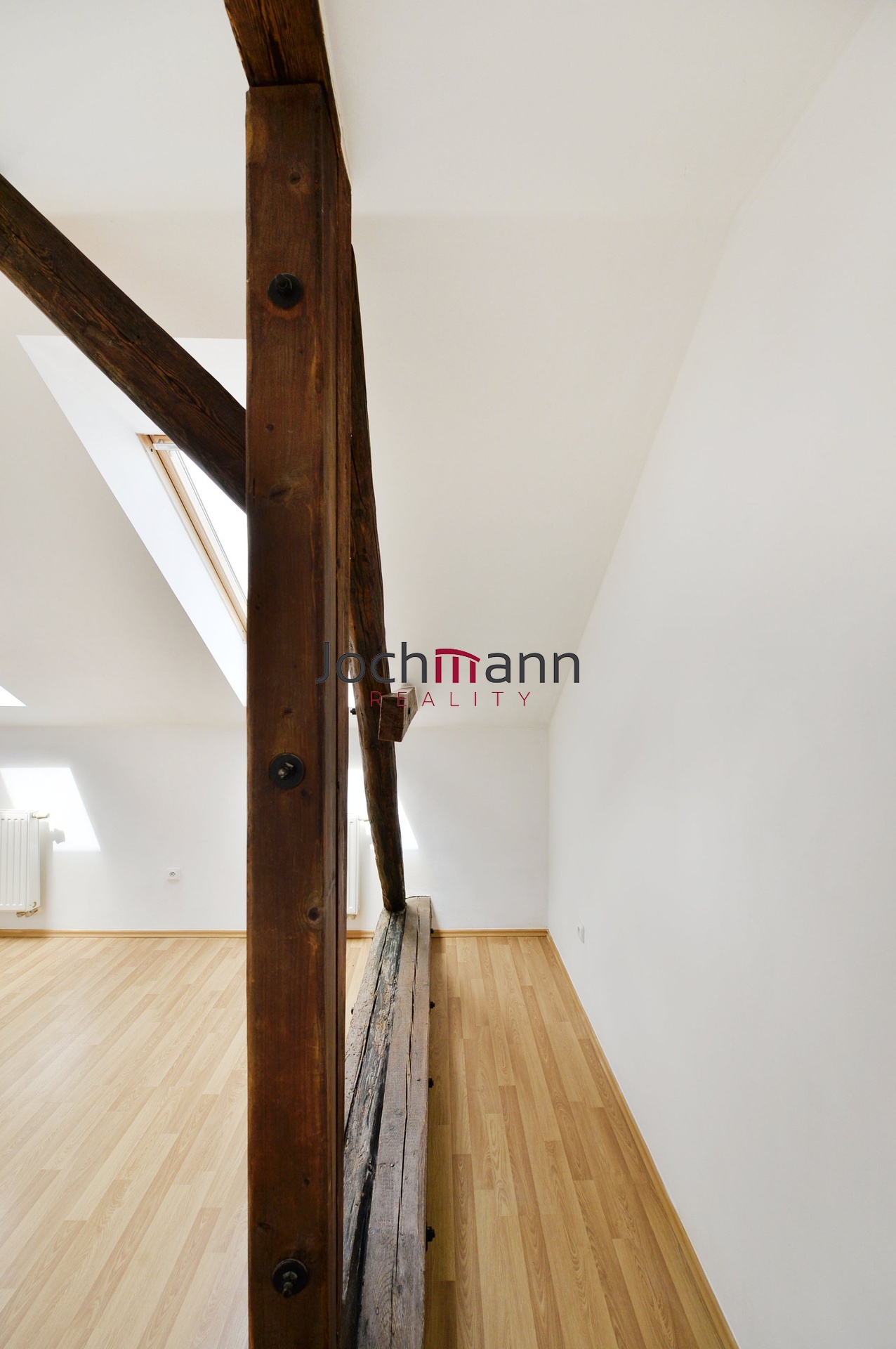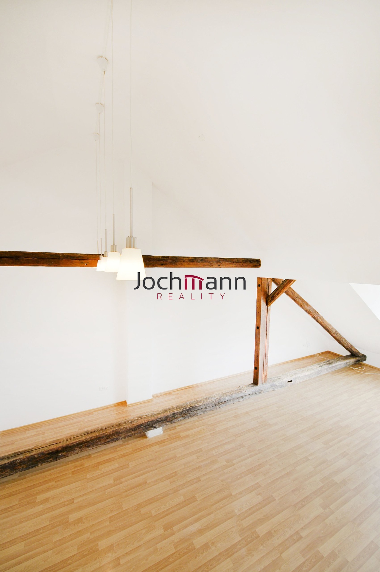 Atypický zrekonstruovaný podkrovní byt mezonetového typu o velikosti 4kk se nachází v samém srdci města v jednosměrné ulici. Dispozice bytu nabízí předsíň, chodbu se vstupem do ložnice, do moderně zrekonstruované koupelny s vanou a na samostatnou toaletu. Dále se nachází dětský pokoj a prosvětlená obývací místnost s vybavenou kuchyňskou linkou , která nabízí dostatek prostoru jak na jídelní, tak relaxační část a je zde výstup do mezonetového prostoru, který může posloužit jako ložnice či jako skladovací prostor. Dominantou celého bytu je částečně viditelná konstrukce krovu. K bytu náleží taktéž sklep. Dům prošel v roce 2011 rekonstrukcí. V těsné blízkosti veškerá občanská vybavenost , kulturní a sportovní vyžití, docházková vzdálenost do centra města. Doporučujeme!