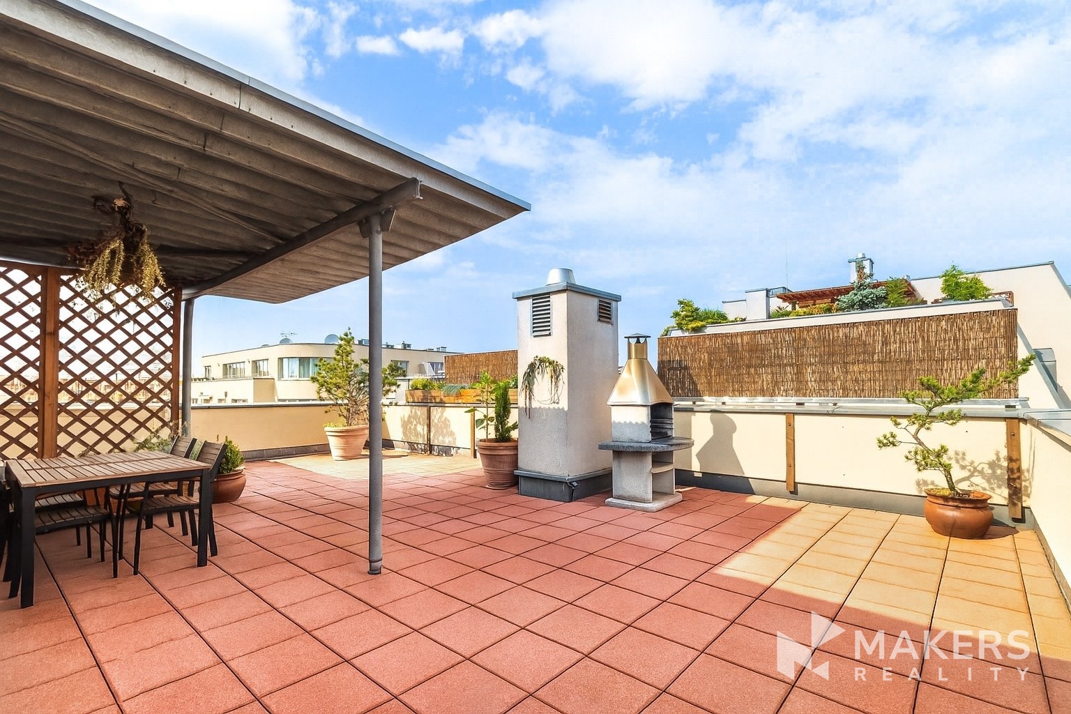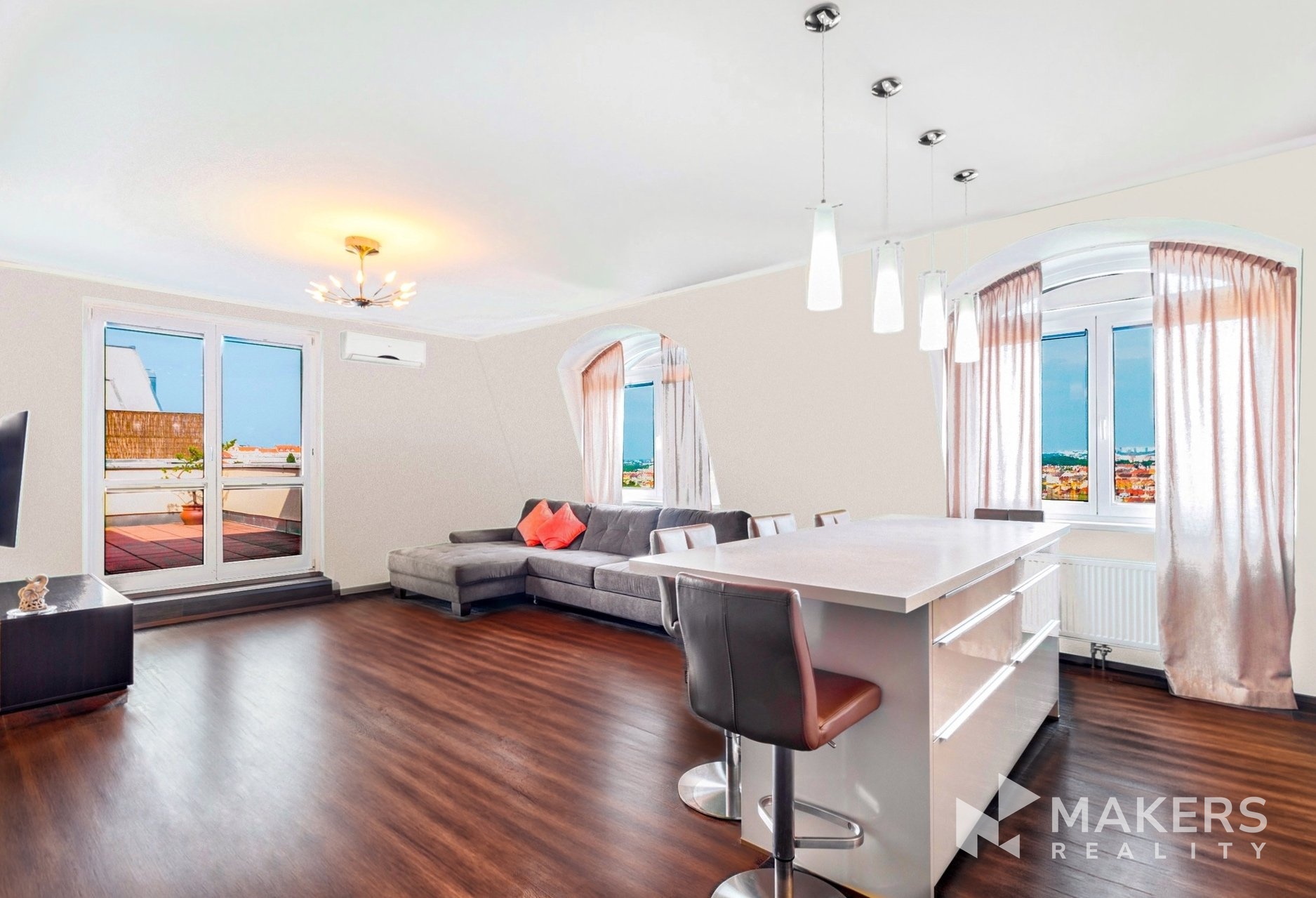 Exkluzivní bydlení s panoramatickým výhledem – byt 4+kk s velkou terasou a bazénem v srdci Vinohrad