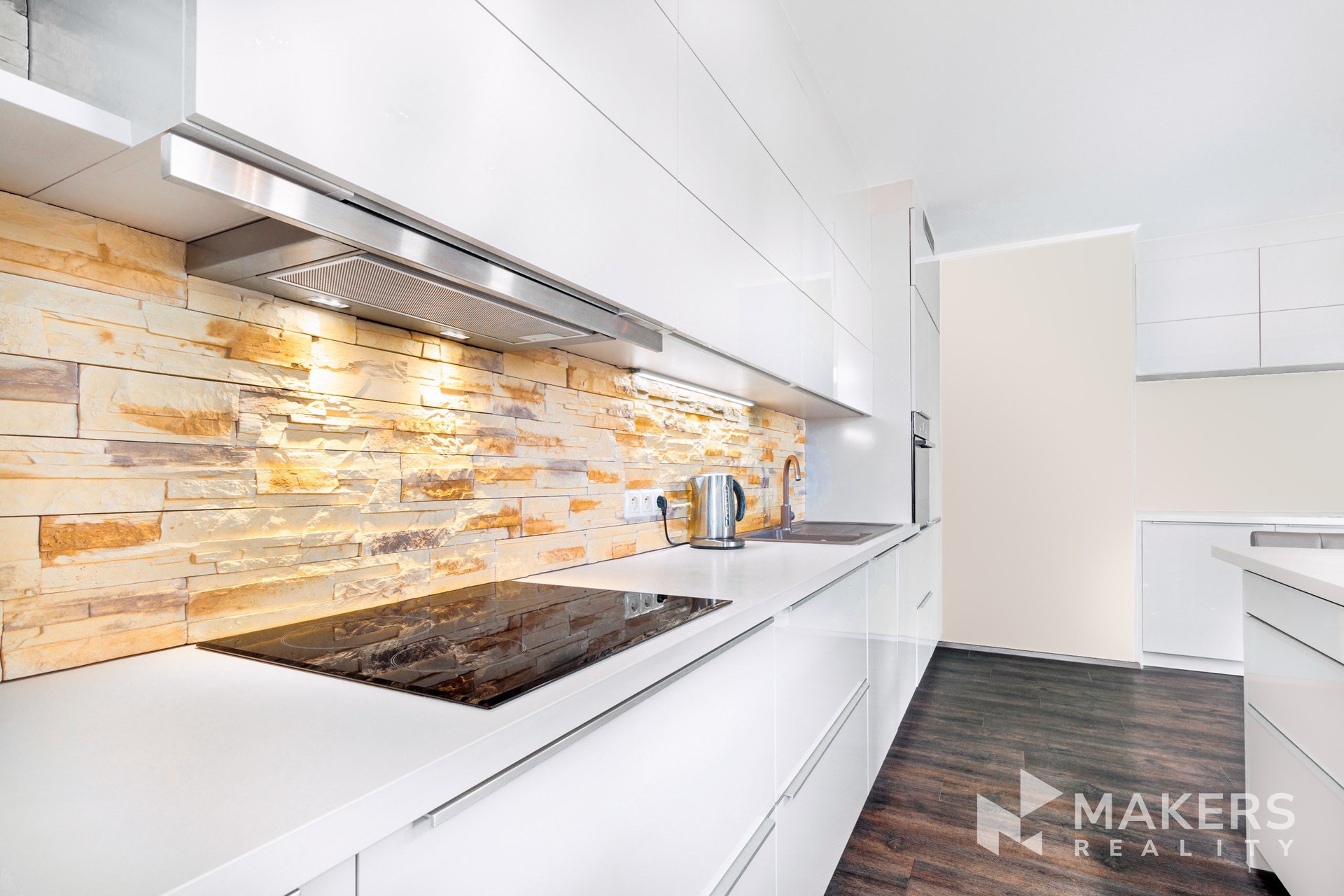 Nabízíme k pronájmu jedinečný byt 4+kk o celkové rozloze 228 m² (užitečná plocha 154 m²), který se nachází v 7. nadzemním podlaží prestižní rezidence U Zvonařky. Dominantou bytu je terasa o velikosti 74 m² s dechberoucím panoramatickým výhledem do malebného Nuselského údolí a okolních Vršovic.