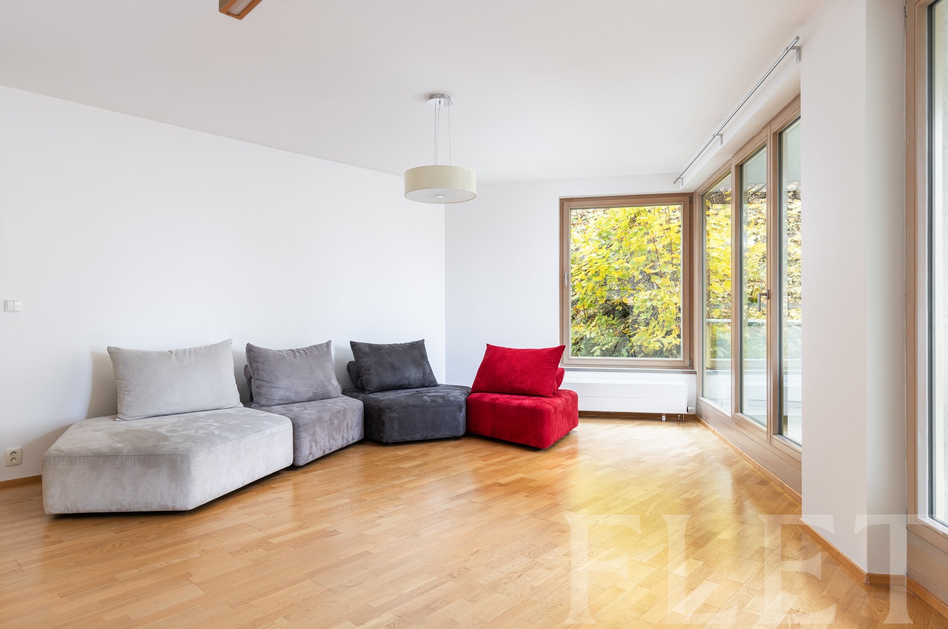 Byt o velikosti 4+kk nabízí dostatek prostoru pro komfortní bydlení. Světlý obývací pokoj je propojen s kuchyňským koutem, který nabízí moderní spotřebiče a dostatek úložných prostor. Čeká zde na vás pohodlná sedací souprava a vejde se zde i jídelní kout s místem pro větší rodinu. Dostanete se odtud na prostornou terasu s příjemným posezením s krásným výhledem do zeleně. Další tři pokoje jsou oddělené, ve dvou z nich jsou malé balkóny a z jednoho se dostanete také do samostatné koupelny s vanou a toaletou. Z chodby je přístupná další takováto koupelna i oddělená toaleta. Celý byt je prosvětlený díky velkým oknům, které zajišťují dostatek přirozeného světla. Kvalitní podlahy a materiály jsou použity v celém bytě, zatímco úložné prostory a šatní skříně nabízí dostatek místa pro pohodlné uskladnění vašich věcí.