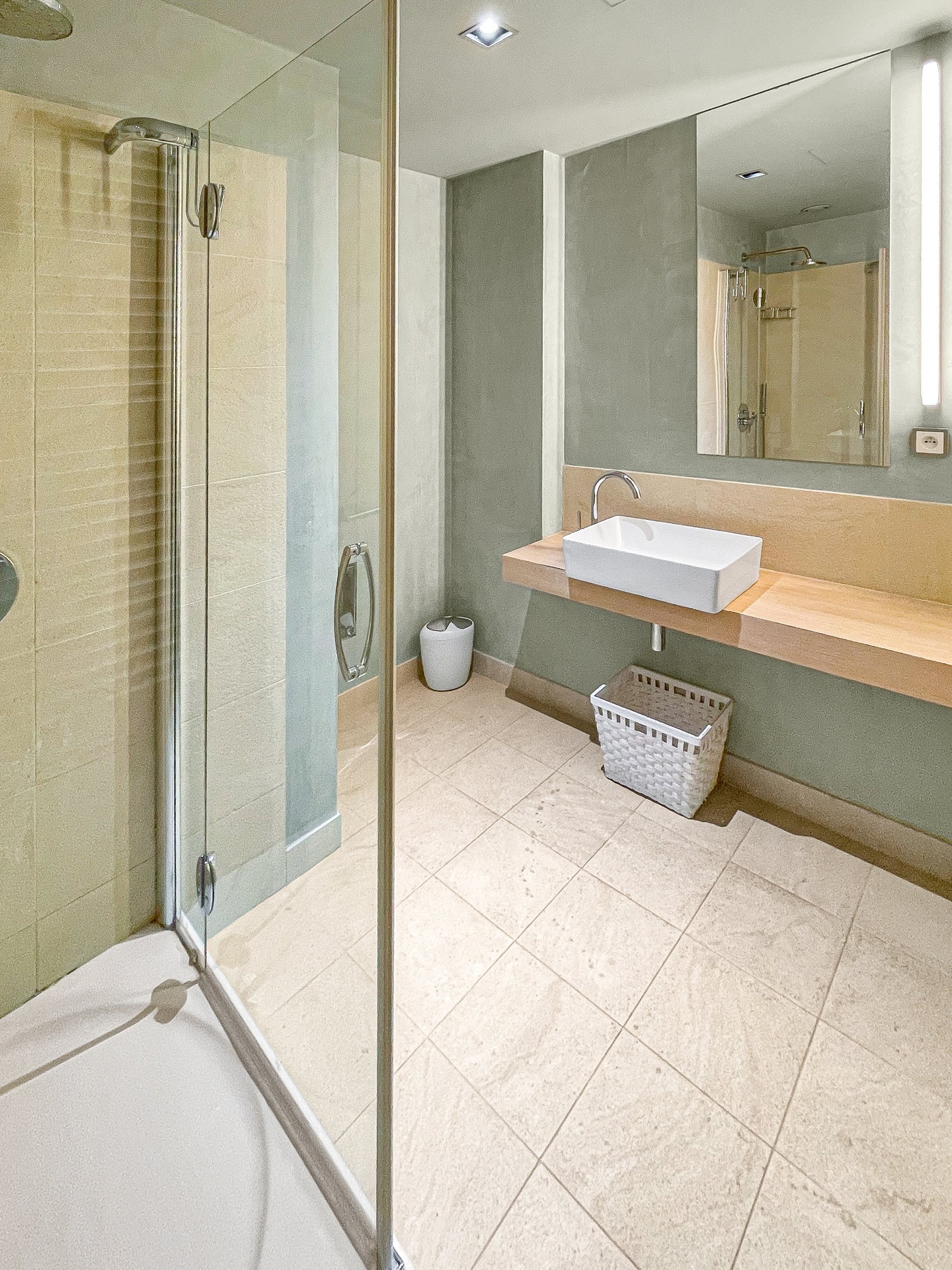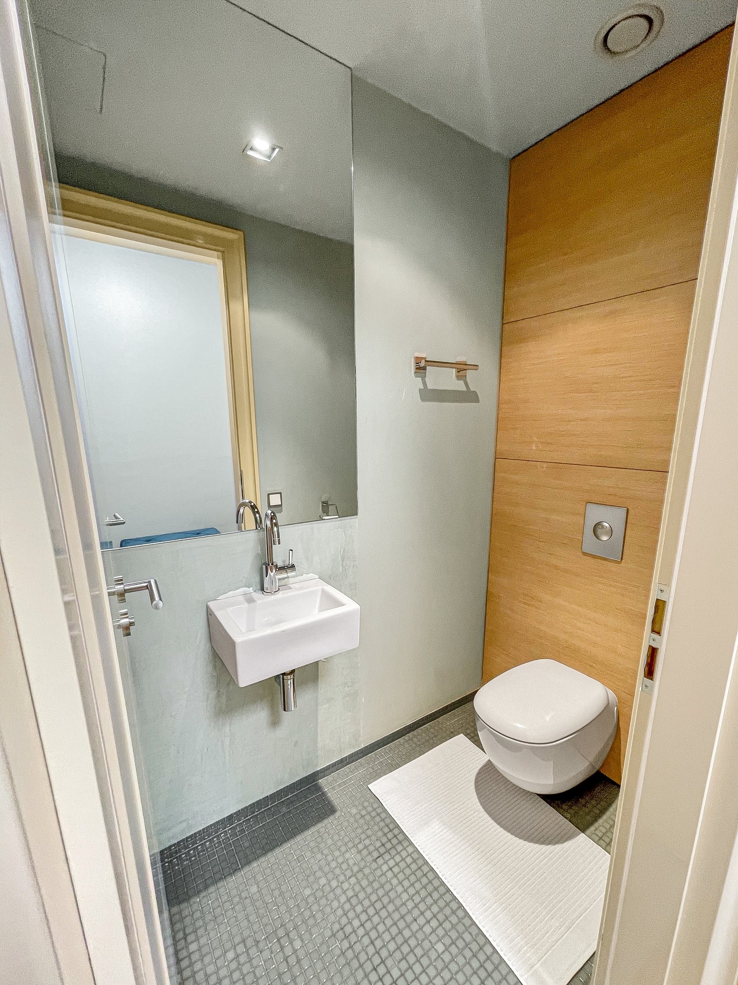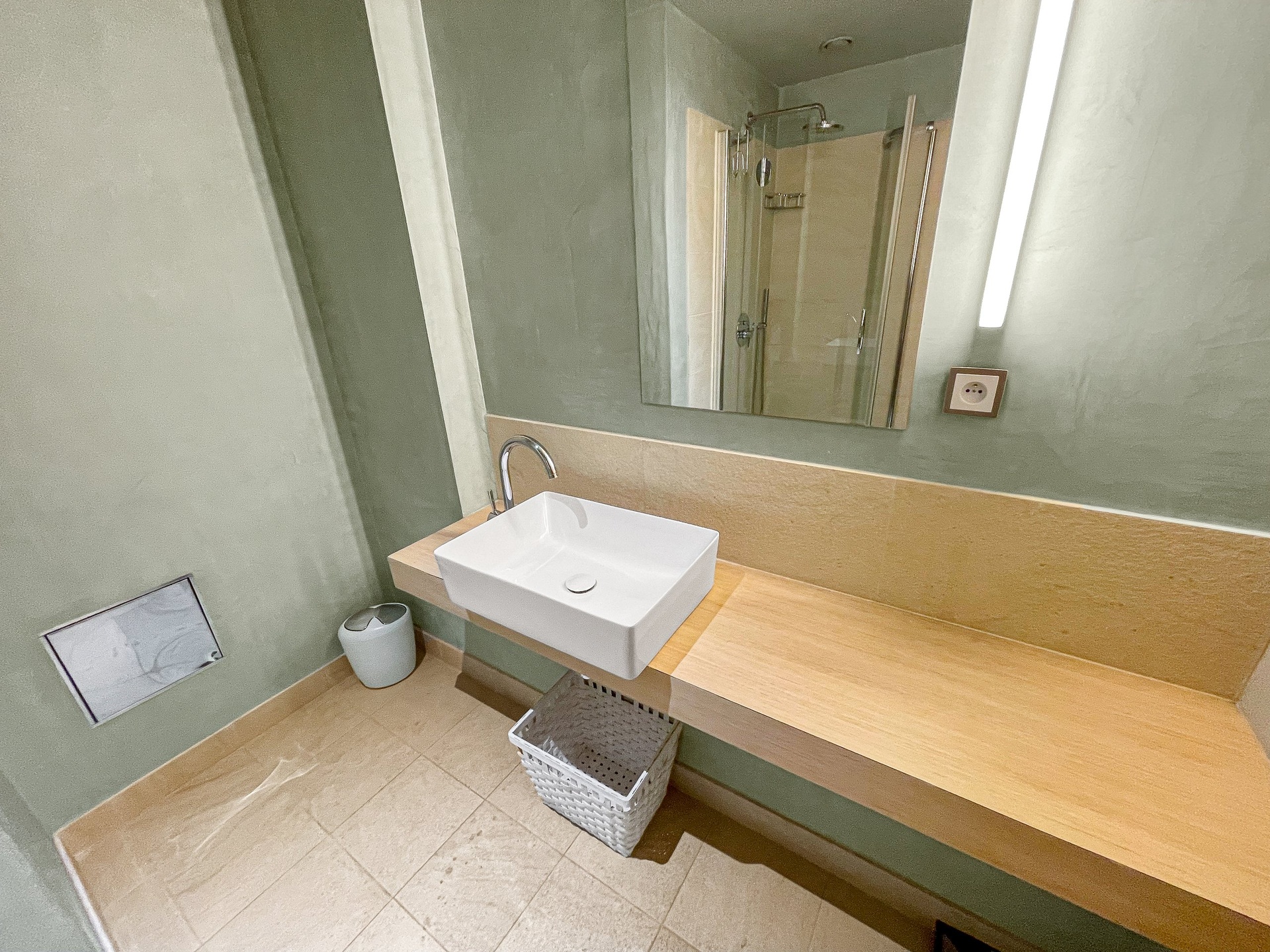 Byt disponuje dvěma koupelnami a samostatným WC. Hlavní koupelna je vybavena vanou, druhá sprchovým koutem. Nechybí ani technická místnost s pračkou a sušičkou Miele.