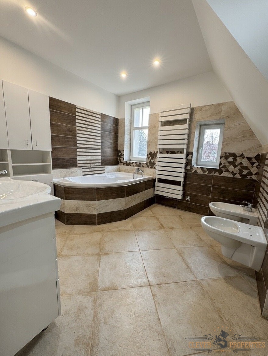 Vila prošla kompletní rekonstrukcí – nové rozvody, podlahy, okna i technické zázemí, při zachování původního charakteru domu a jeho architektonické hodnoty.
