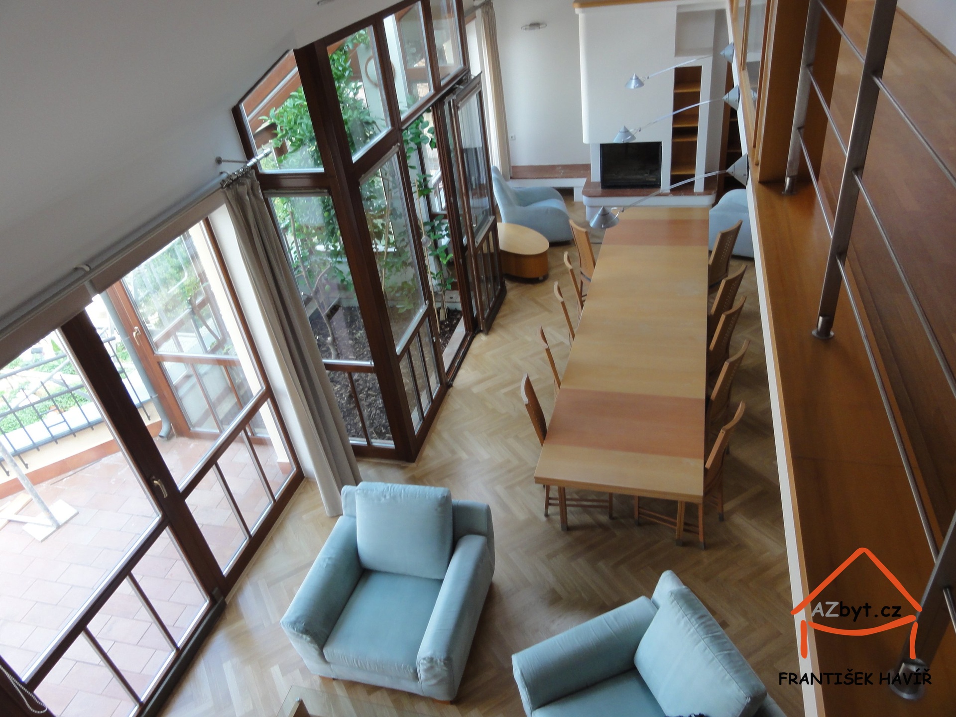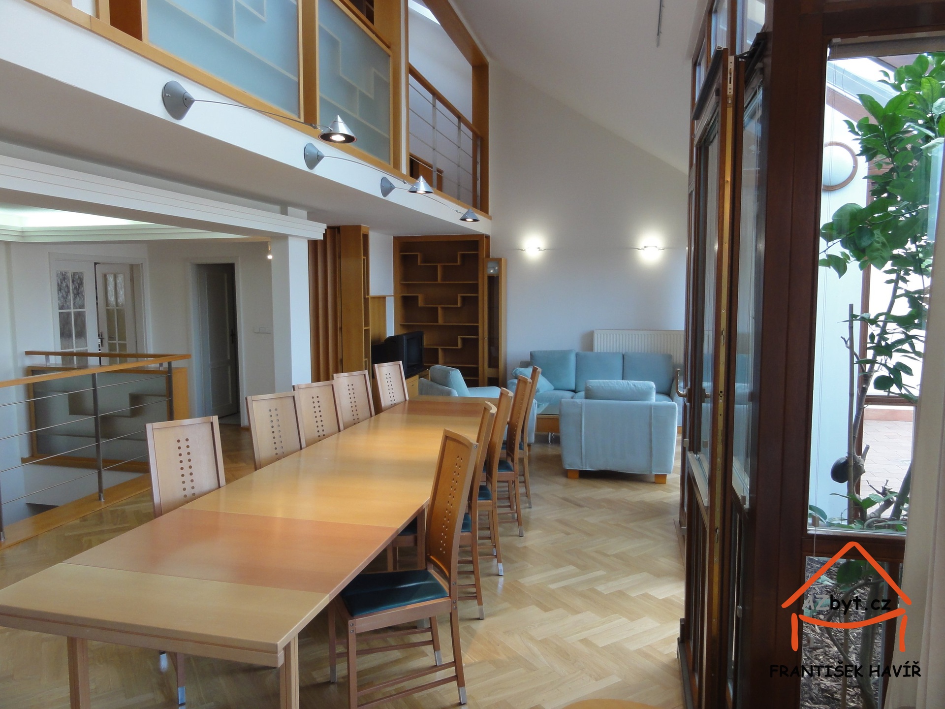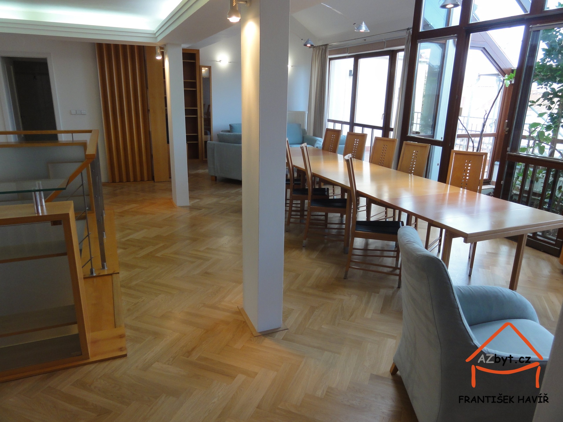 (Ve třetím patře je možné oddělit samostatný byt 2+kk, cca 50 m2 a pronajmout mezonet o ploše cca 218 m2 za 45 000 Kč měsíčně včetně poplatků + energie dle spotřeby.)