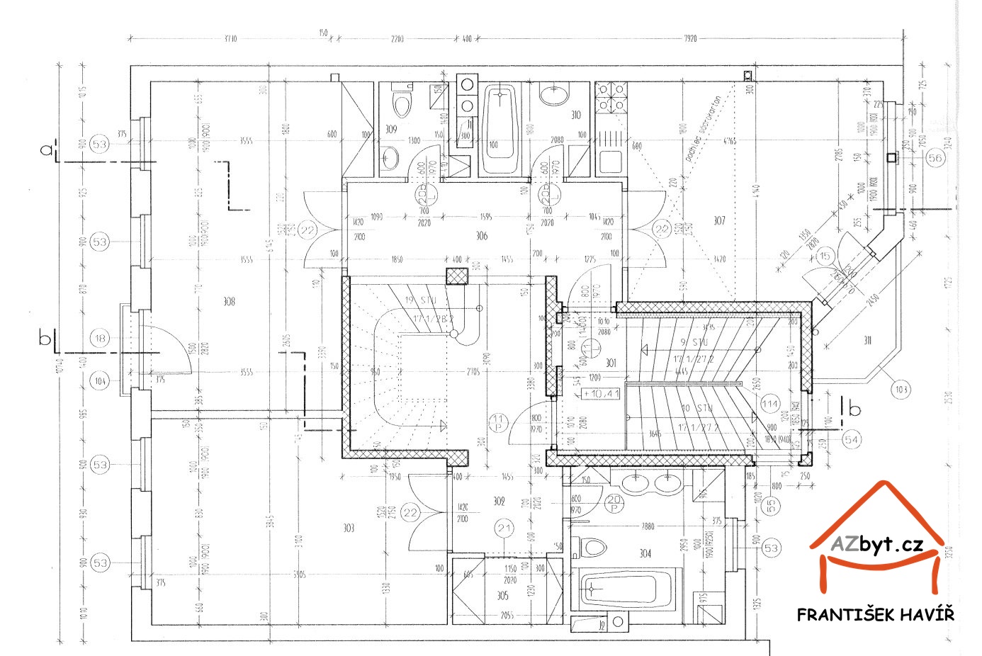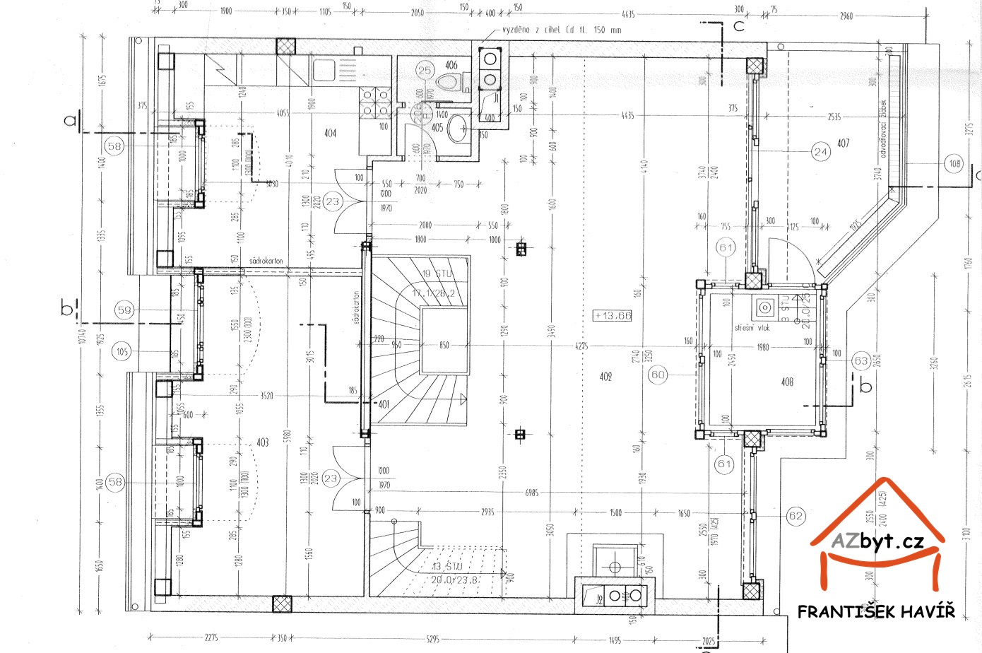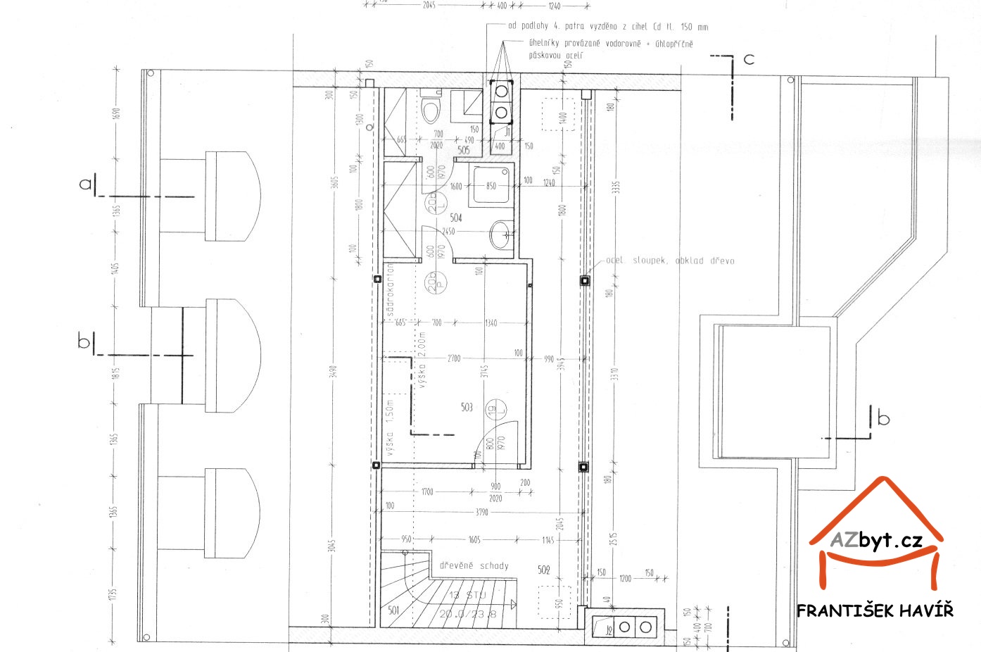 (Ve třetím patře je možné oddělit samostatný byt 2+kk, cca 50 m2 a pronajmout mezonet o ploše cca 218 m2 za 45 000 Kč měsíčně včetně poplatků + energie dle spotřeby.)