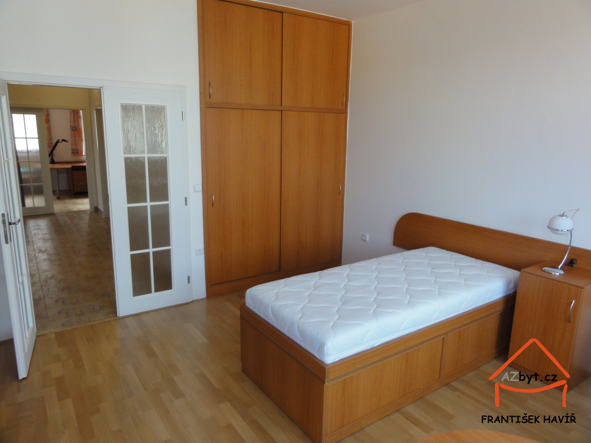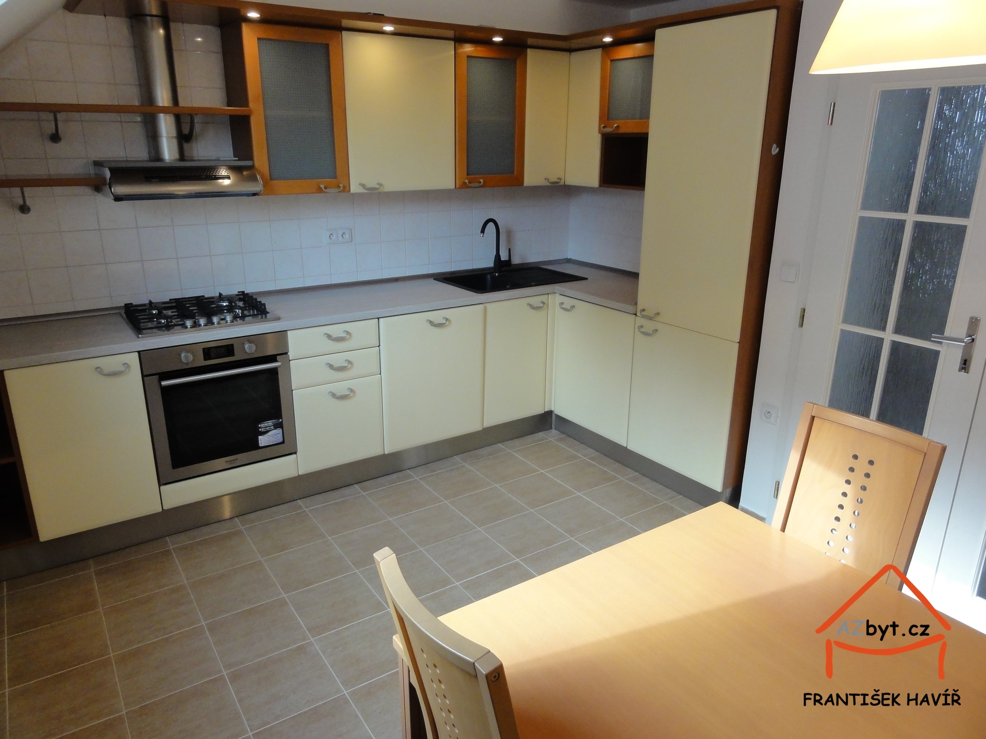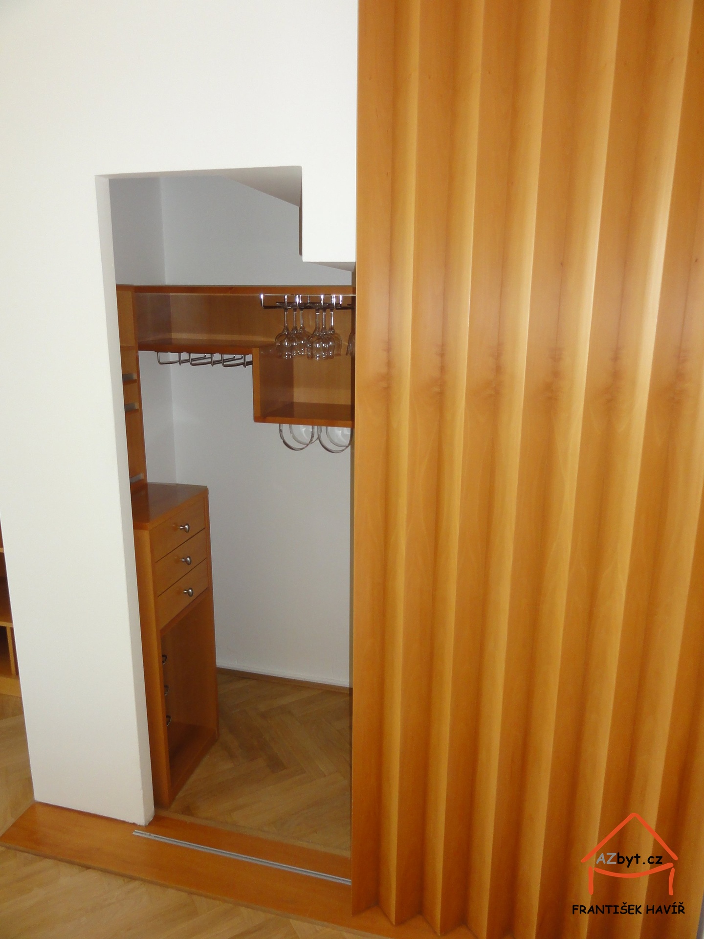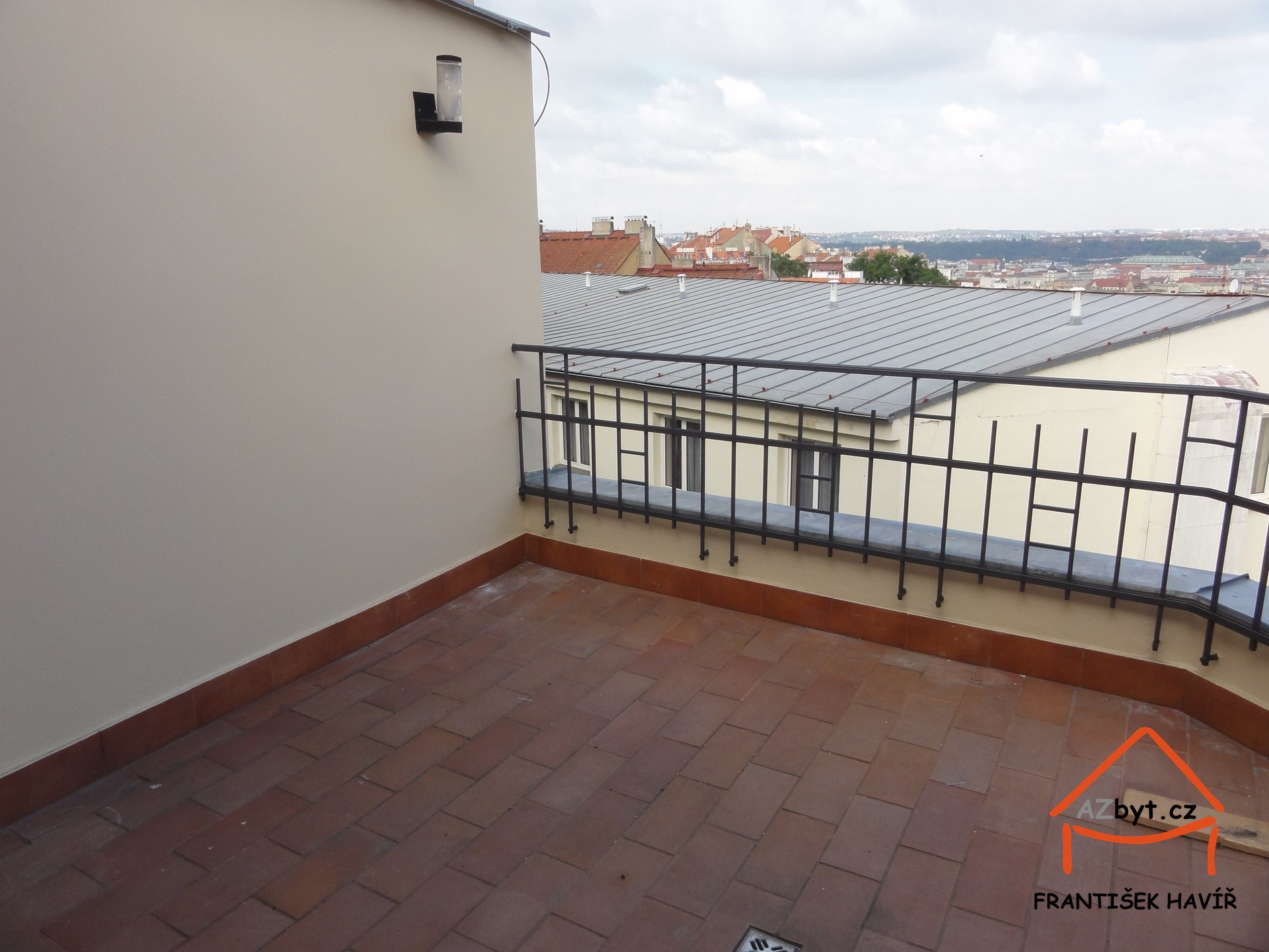 Byt se zimní zahradou a terasou s panoramatickým výhledem (Pražský hrad, Vítkov) je kompletně zařízen (fotografie) včetně nově vybavené kuchyně a nových matrací.