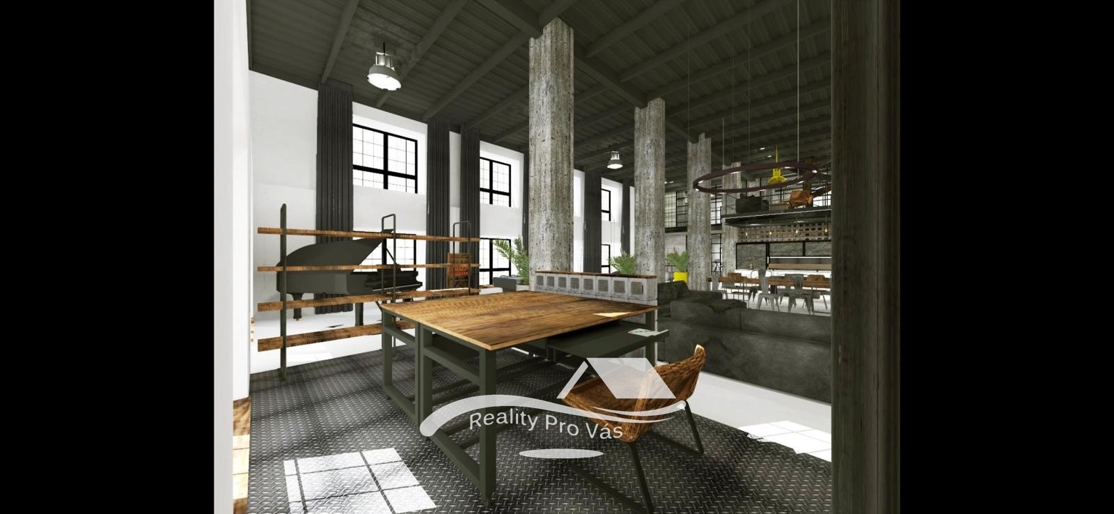 Loft je velkorysý, vzdušný a velmi variabilní. Díky vysokým stropům, velkým oknům a otevřenému půdorysu nabízí široké možnosti využití – je ideální jak pro stylové bydlení, tak jako sídlo firmy, kancelář, ateliér či reprezentativní showroom.
