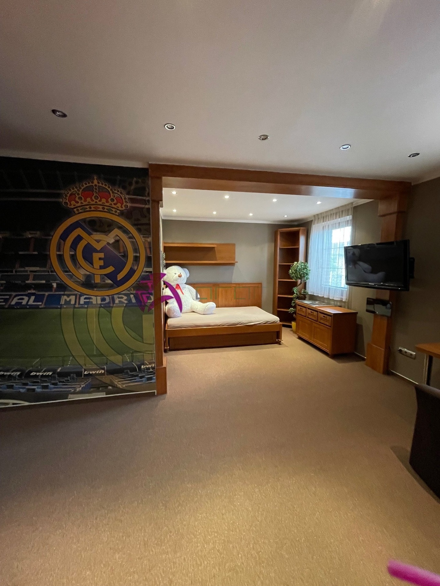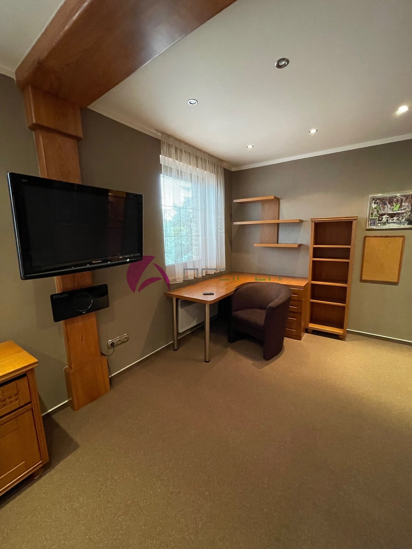 Ze spodní haly i obývacího pokoje je vstup na dvorek s pěkným posezením, navazující na prostor s velkým bazénem se slanou vodou a s přilehlým krytým dalším posezením s grilem. V místě je školka, základní škola, obchod, dobré spojení do města. Kdo má rád svůj klid, najde tu to pravé místo na bydlení. Volné od 1. 12. 2025 za cenu měsíčního nájmu 25 000,- Kč + elektřina s přepisem na nájemce (asi 7 tis.) + 2000,- Kč voda. Vratná kauce činí dva měsíční nájmy.