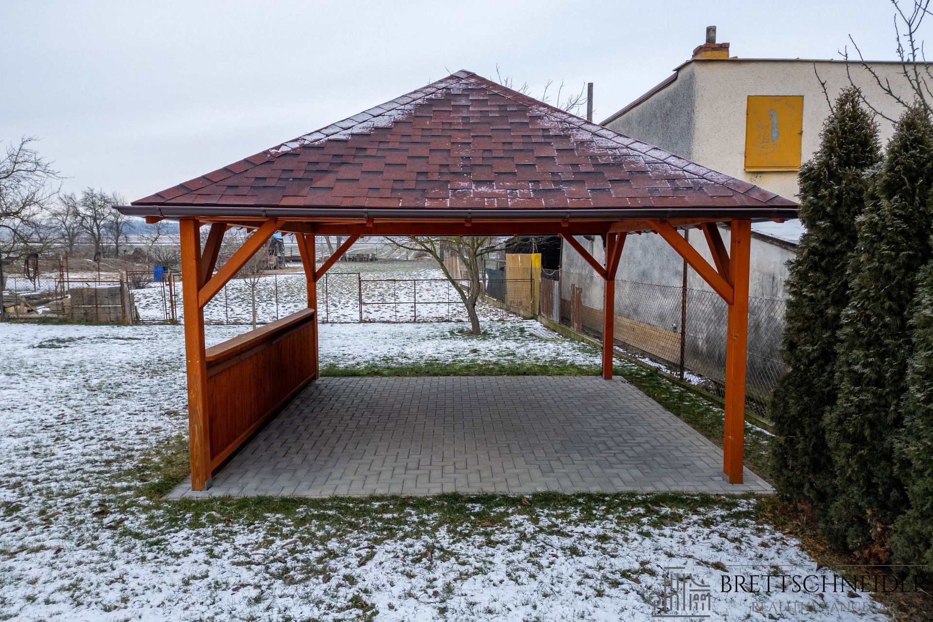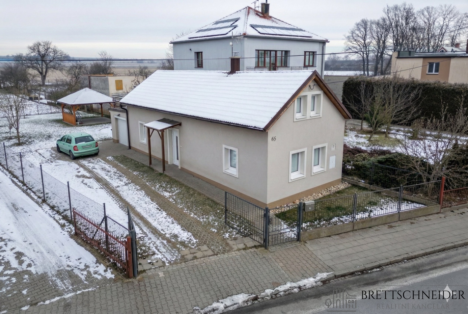 Samostatně zahrada má 420 m2 s krásnou pergolou o velikosti 4 x 4 m. U domu se nachází menší garáž.