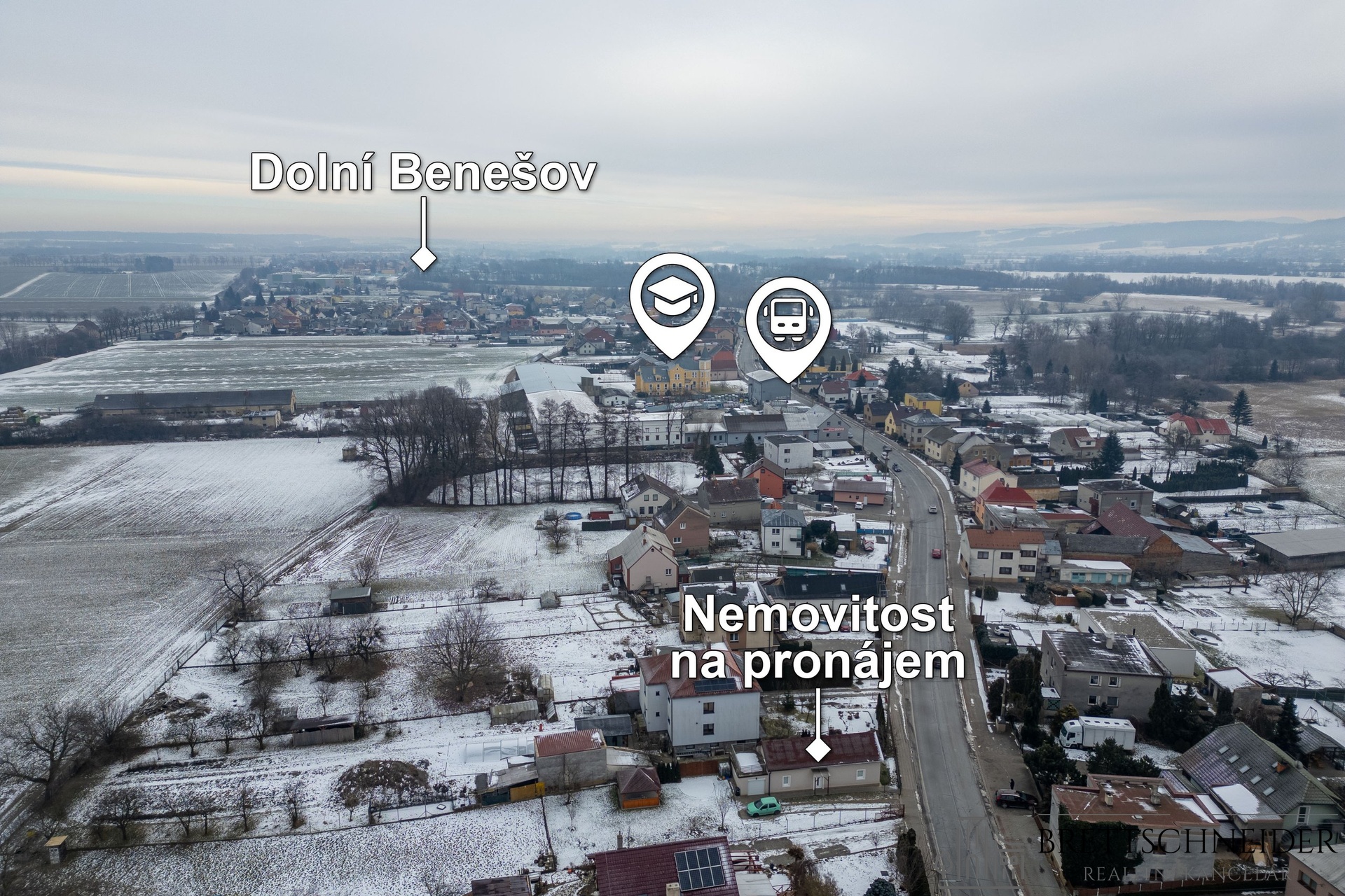 - Autobusová zastávka Dolní Benešov, Zábřeh, kostel, do 10 minut pěšky.