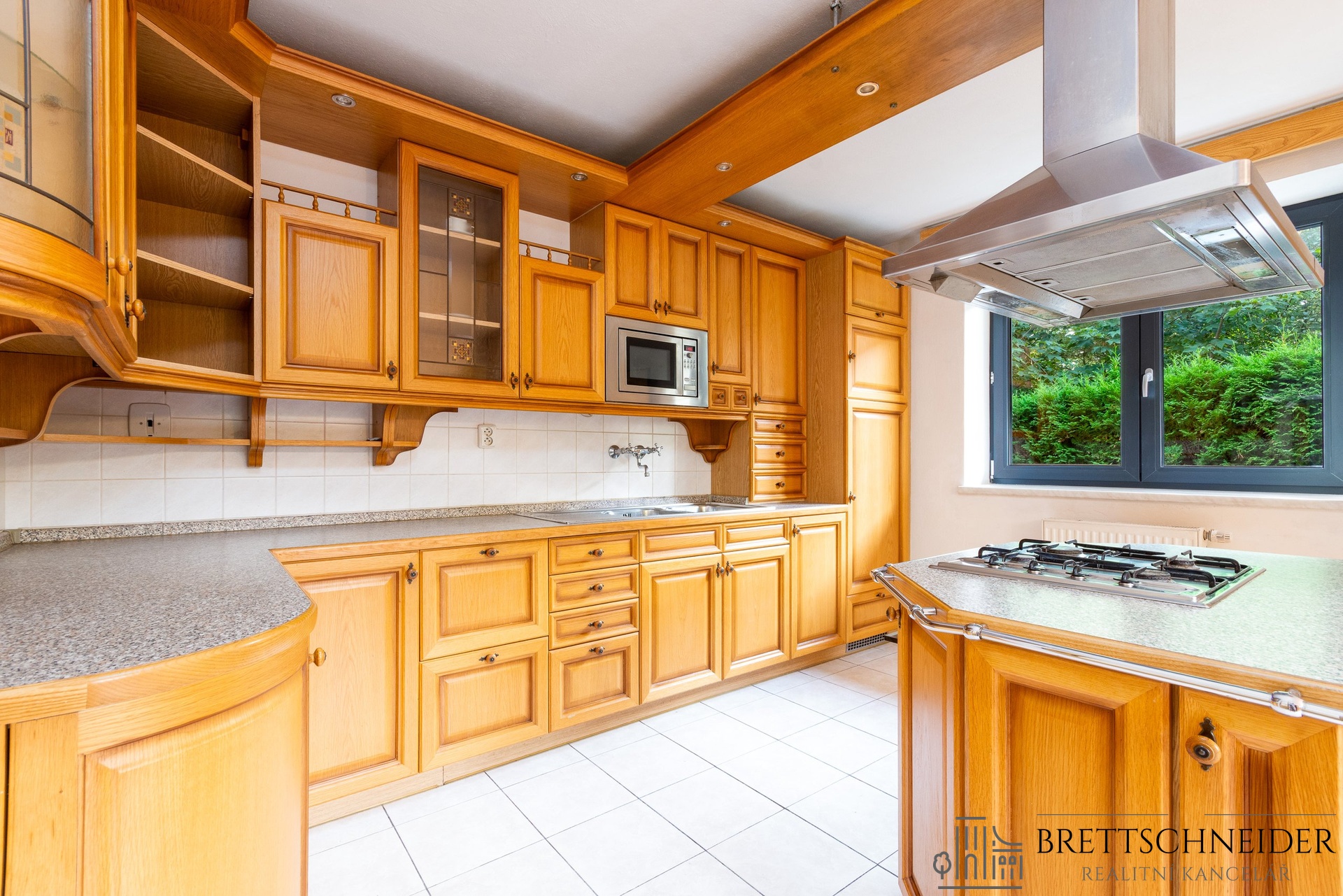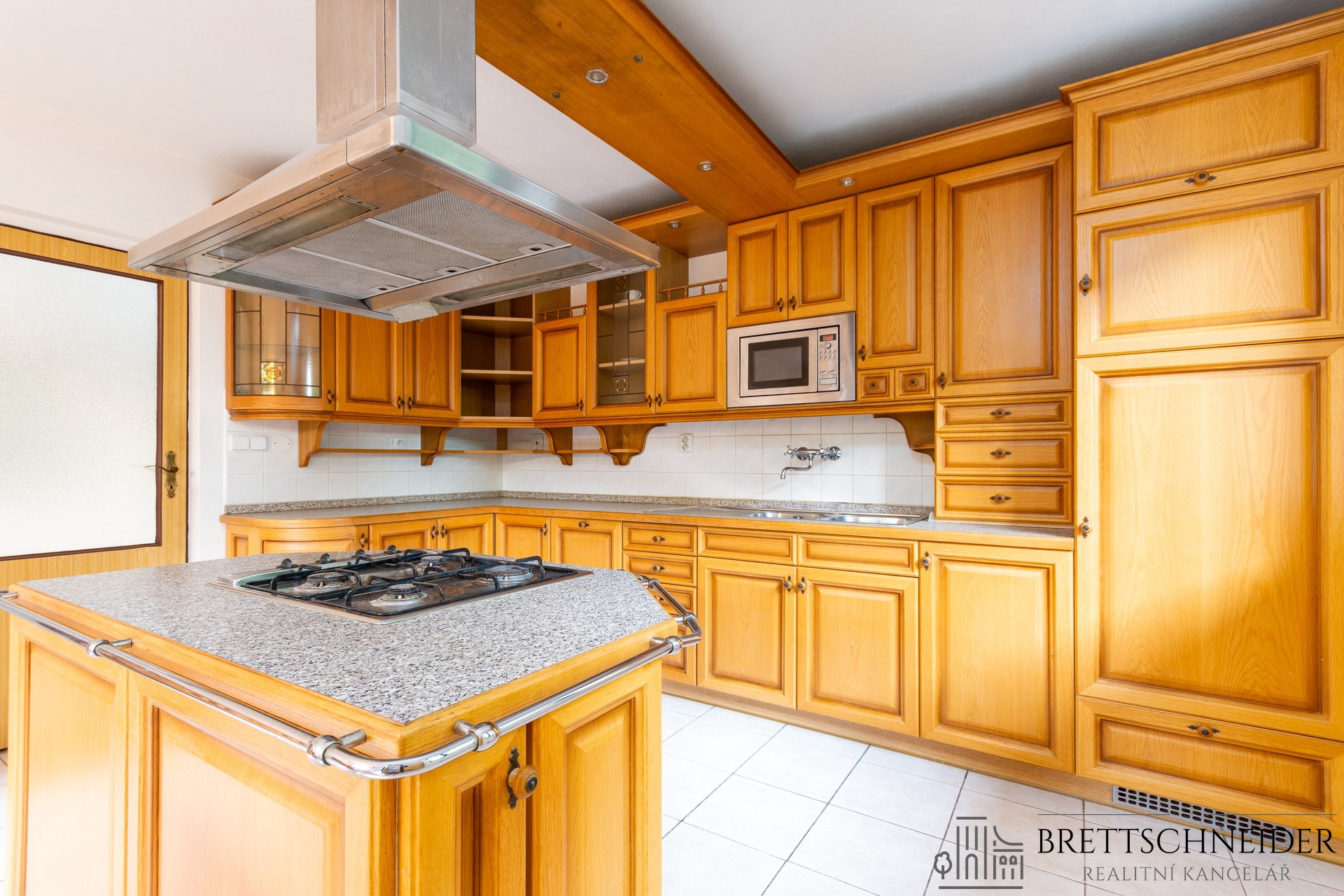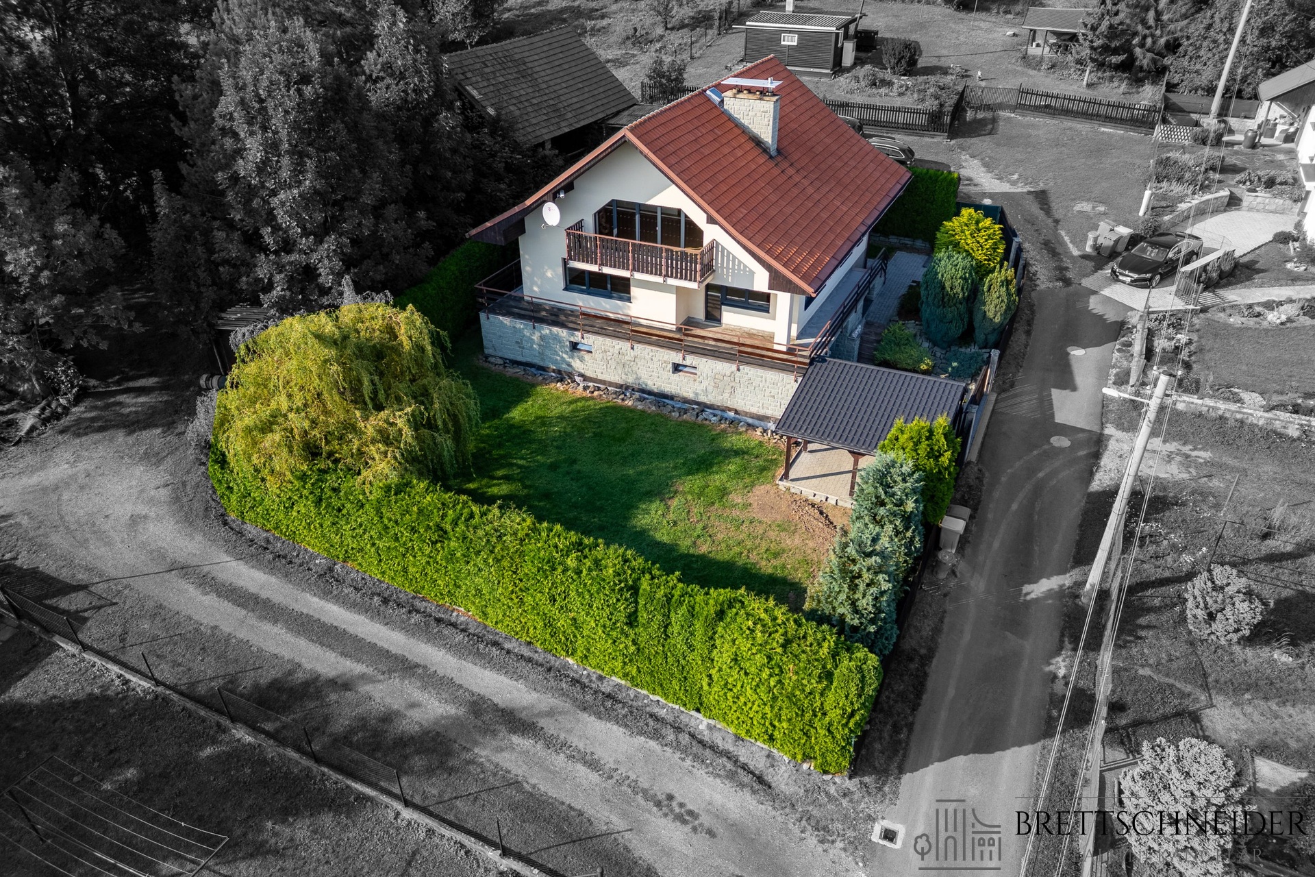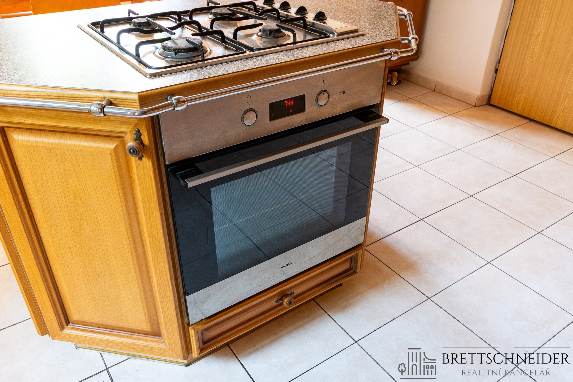 -Vjezd k domu zajišťuje elektrická posuvná brána a na zahradě je přístřešek vhodný na grilování nebo kryté parkování.