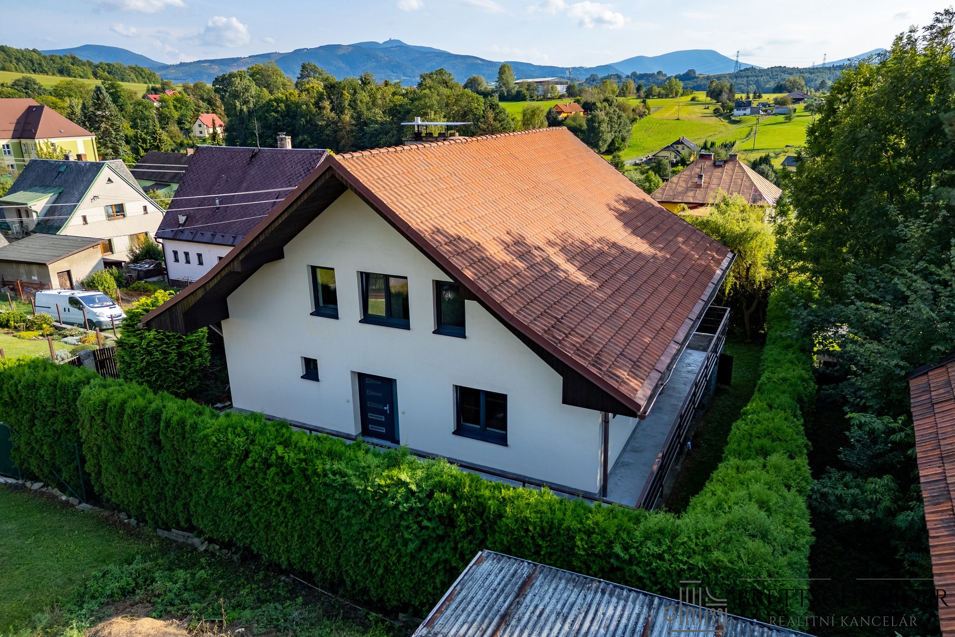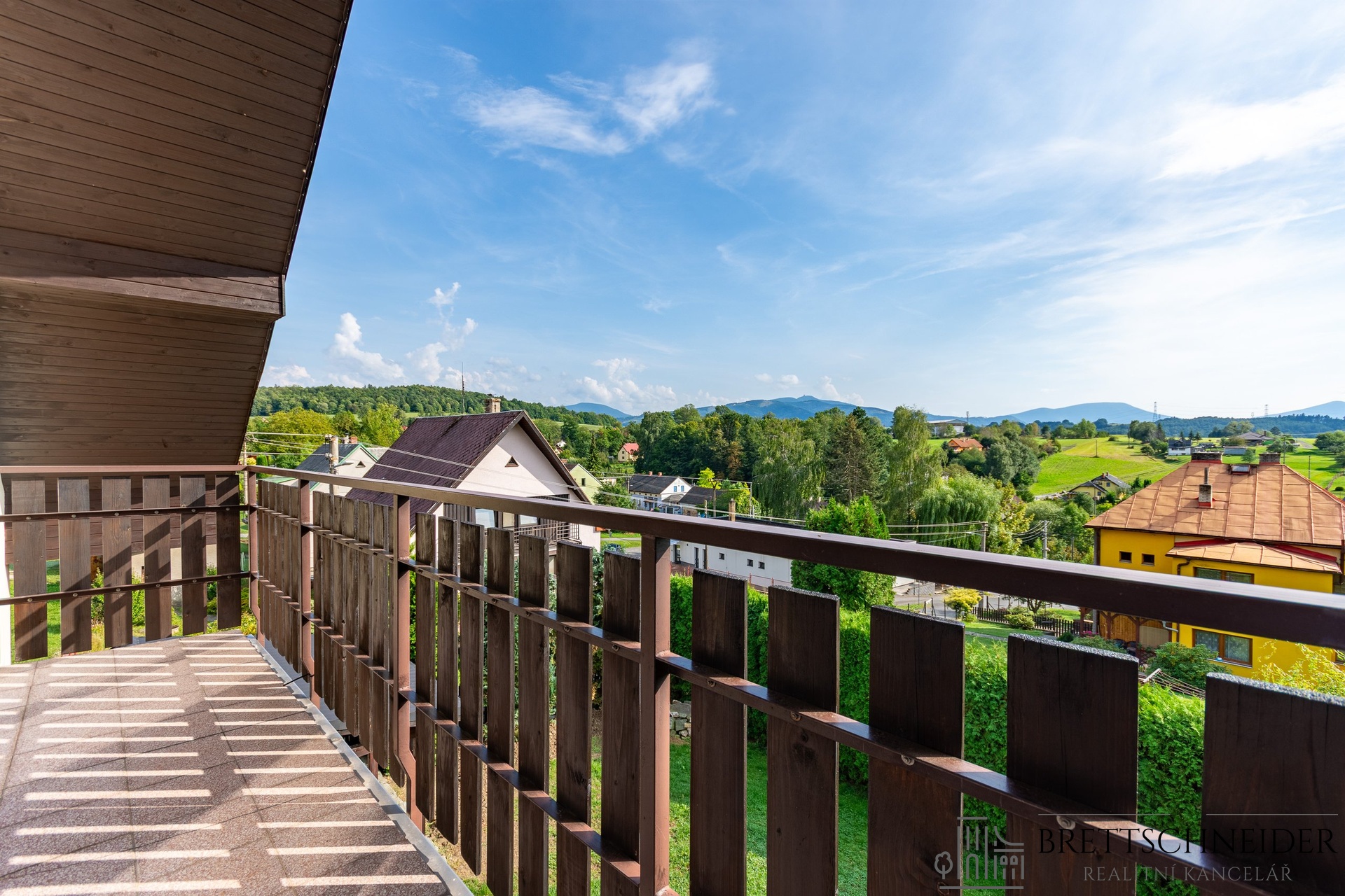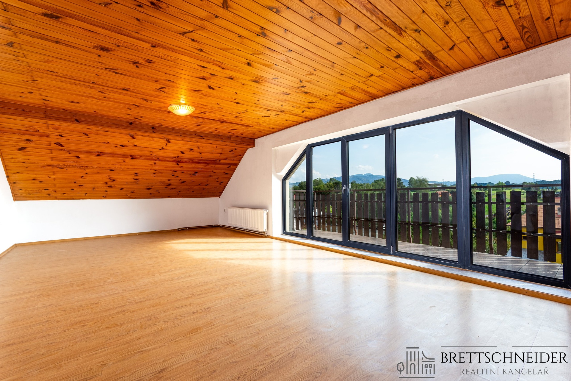 -Podkroví: dva obytné pokoje, jeden pokoj připravený na kuchyň a koupelna s vanou. Z oken se nabízí krásný výhled na Lysou horu, který si můžete vychutnat třeba při ranní kávě.