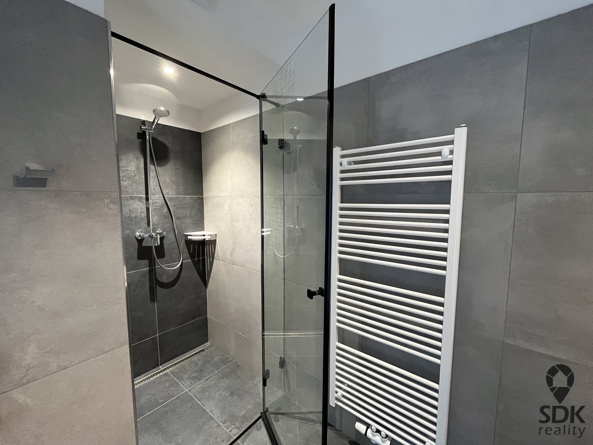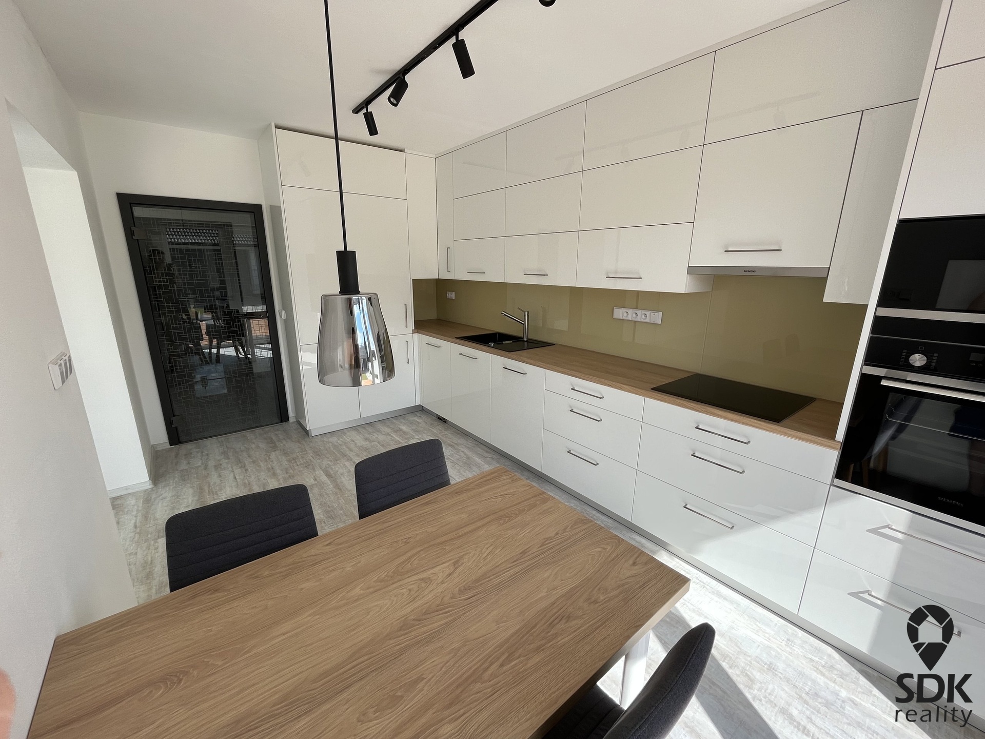 1.NP – prostorná vstupní hala 9,7m2, obývací pokoj 20,9 a kuchyně vybavená kuchyňskou linkou vč vestavěných spotřebičů o výměře 14,7 m2 – obě místnosti mají výstup na terasu.Pokoj 14,6m2, koupelna se sprchovým koutem 6m2, samostatná toaleta, průjezd 34,9m2 do atriového dvora.