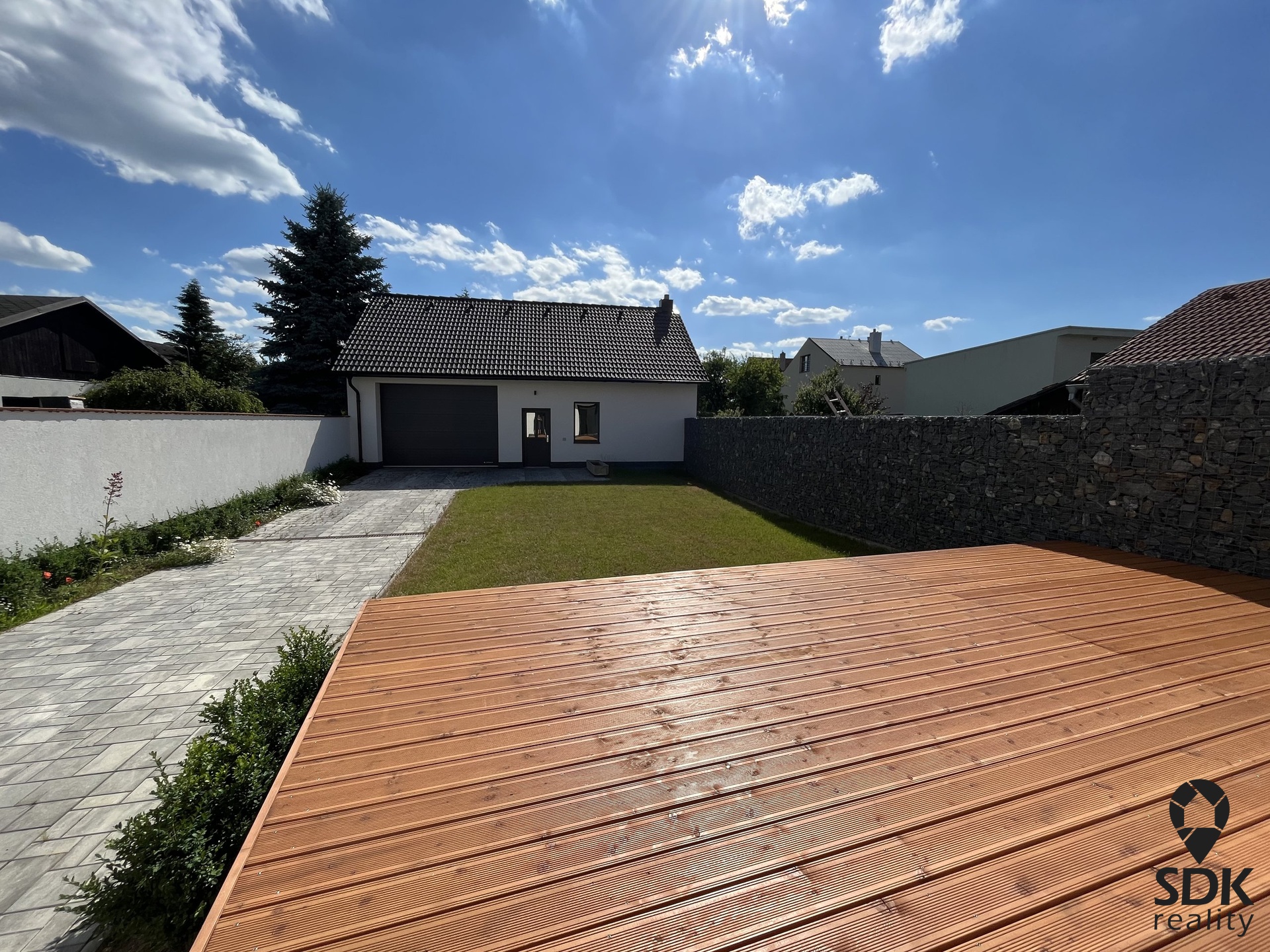 Rodinný dům byl zbudován ve vysokém standardu ať co se týče charakteru i použitých materiálů. K dispozici dvě koupelny, řada úložných prostor, uzavřený atriový dvůr s terasou a velká garáž která lze užívat i jako nebytový prostor pro volnočasové aktivity.
