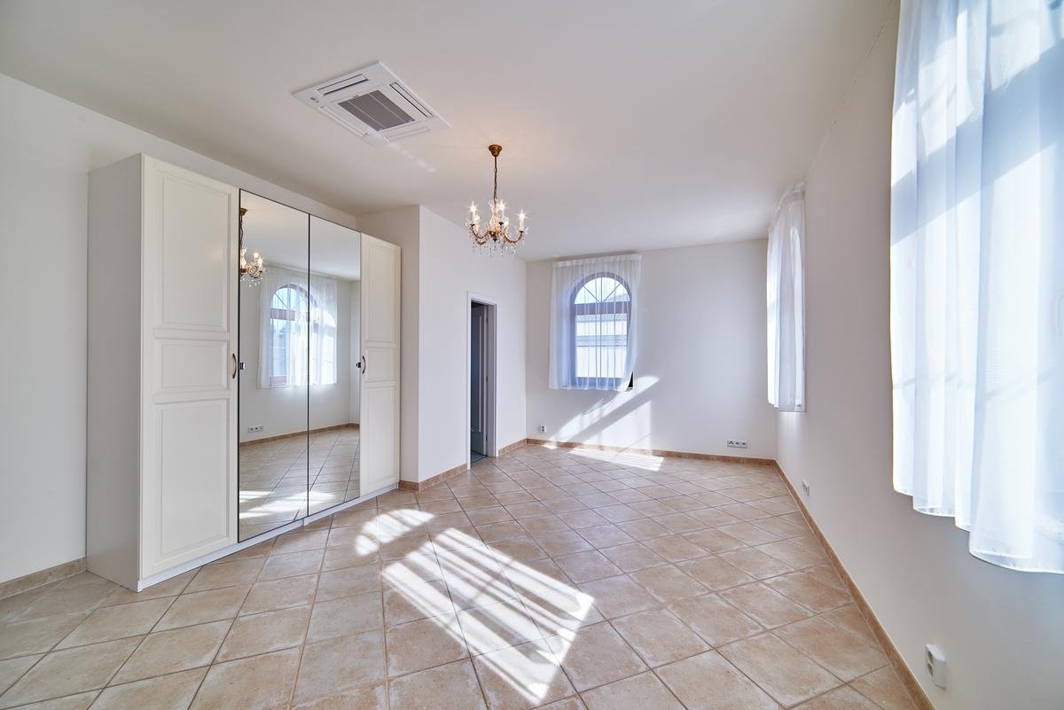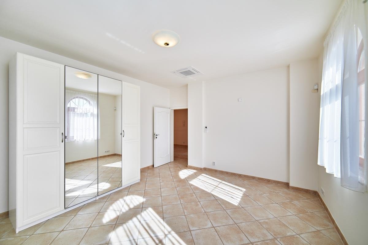 Stylová samostatně stojící vila se nachází v prestižním uzavřeném areálu v pražských Nebušicích. Nabízí obytnou plochu 243 m², dvojgaráž a terasu o rozloze 12 m². K vile náleží soukromá zahrada, jejíž součástí je vyhřívaný bazén o rozměrech 5 x 3,1 x 1,5 m.