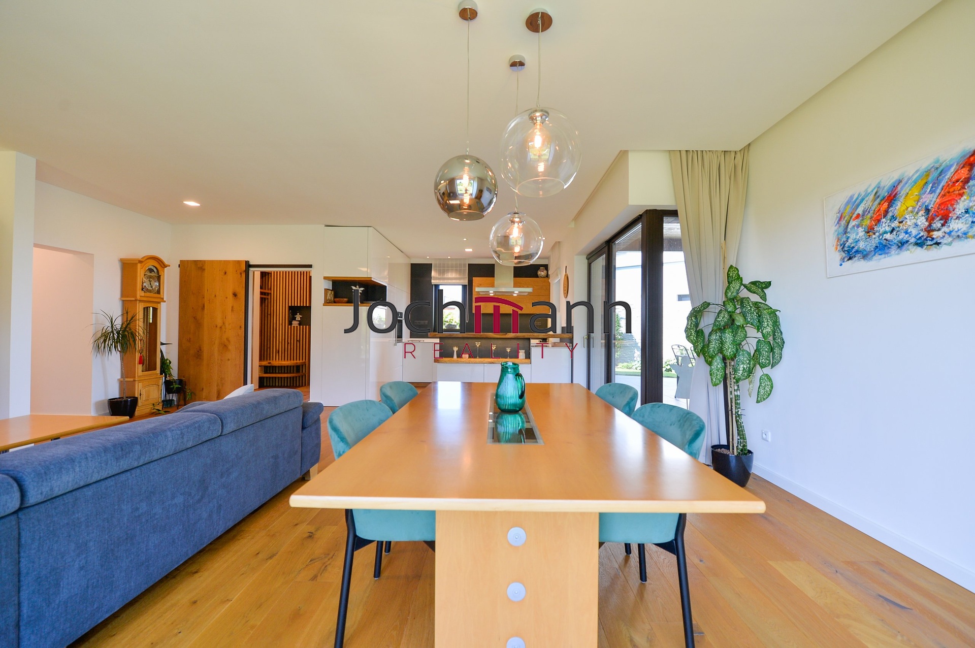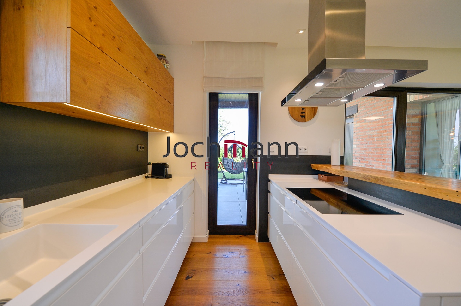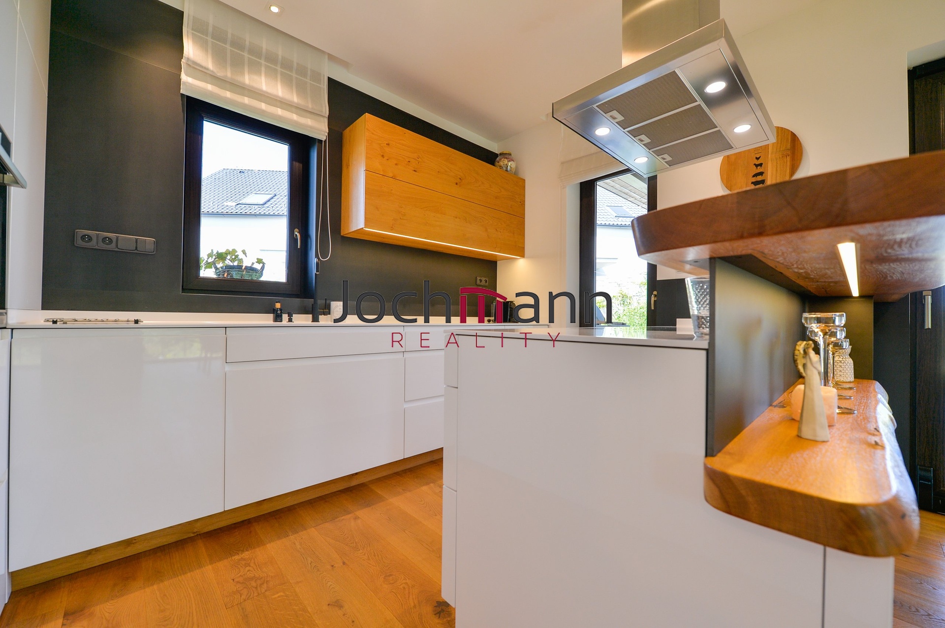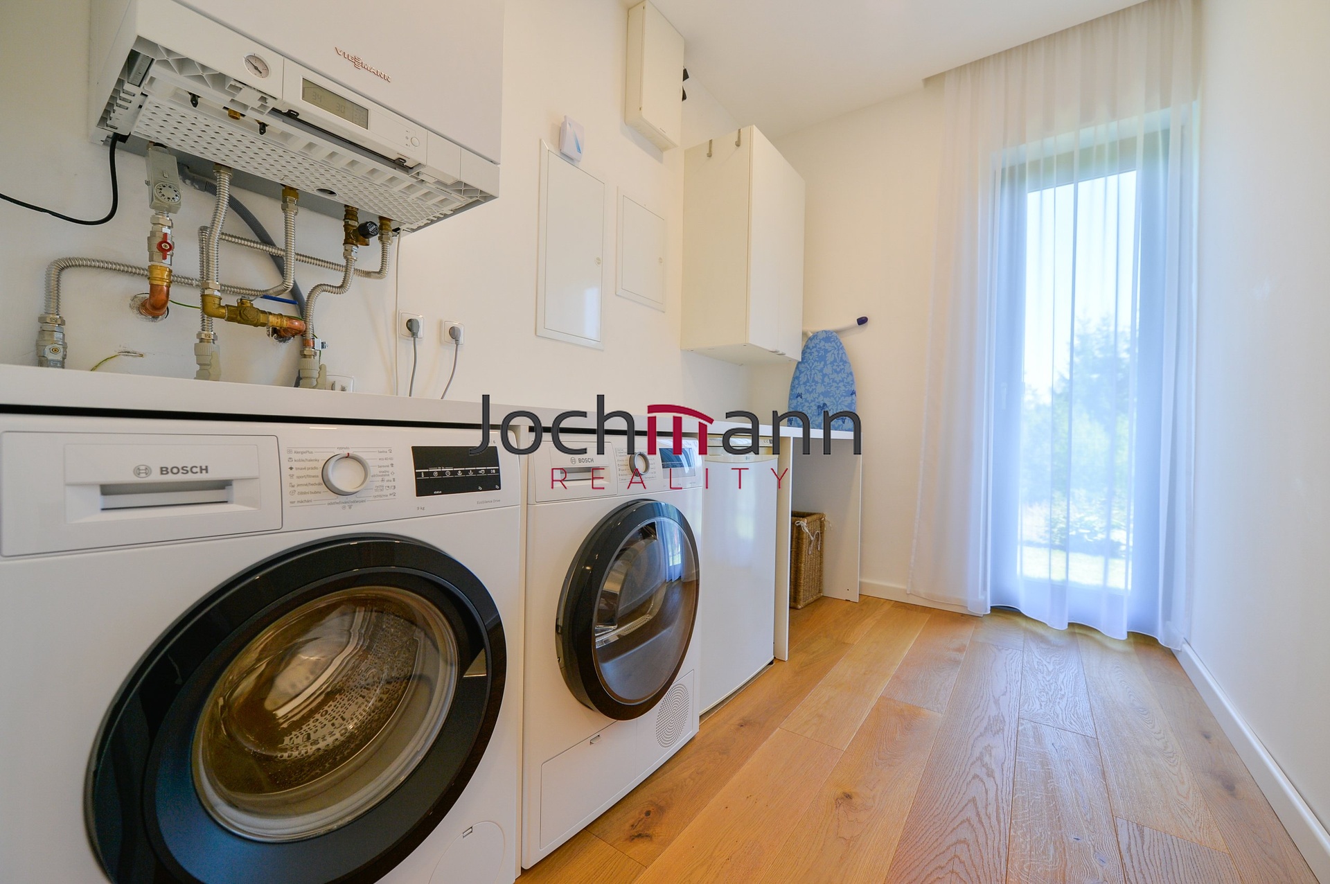 V celém domě jsou využité velice kvalitní materiály (masivní dřevěné podlahy, kamenické rohy v koupelně, velkoformátová okna, kvalitní spotřebiče, podlahové vytápění) a při zařizování interiéru byl kladen důraz na styl a praktičnost. Veškeré vybavení, které je zachyceno na fotodokumentaci, je součástí pronájmu a díky tomu je dům připravený pro nového nájemce k okamžitému bydlení. Parkování je bezproblémově zařízeno přímo na pozemku. Hlavní přidanou hodnotou tohoto bydlení je zejména klidná lokalita s bezproblémovou dostupností do centra dění, luxusní provedení interiéru domu, kompletní vybavenost nábytkem, veškerá potřebná občanská vybavenost lokality atd.. K dispozici od 01.02.2026, dříve po vzájemné dohodě.