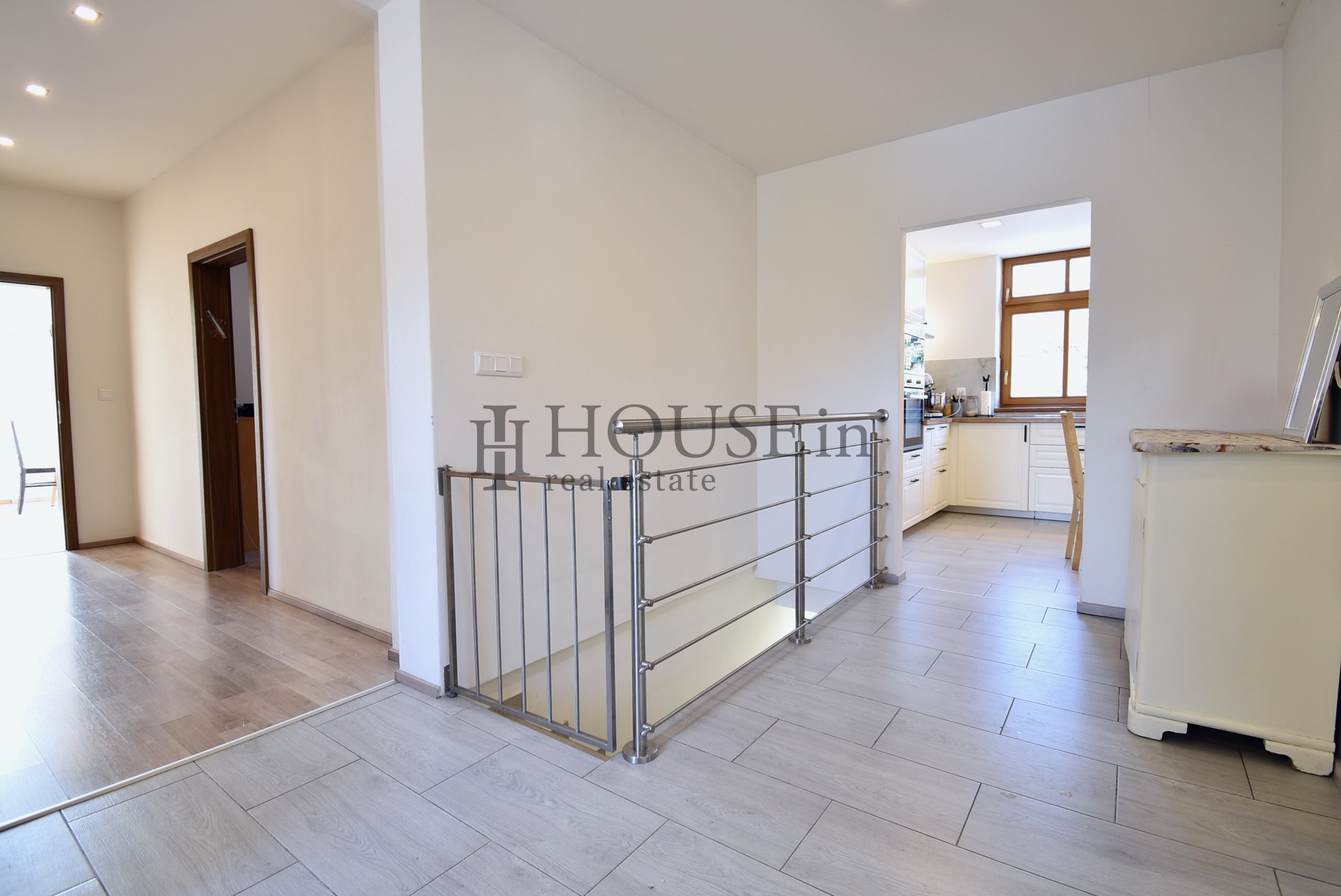 Vstup do domu je možný jak přímo z garáže, tak i ze zahrady bezbariérově přes vrátka, případně po schodišti z hlavní ulice. Dům se pronajímá částečně zařízený. K dispozici je kompletně vybavená kuchyňská linka a další nábytek, který může v domě zůstat dle dohody s majitelem. Parkování pro návštěvy je možné v okolí domu.