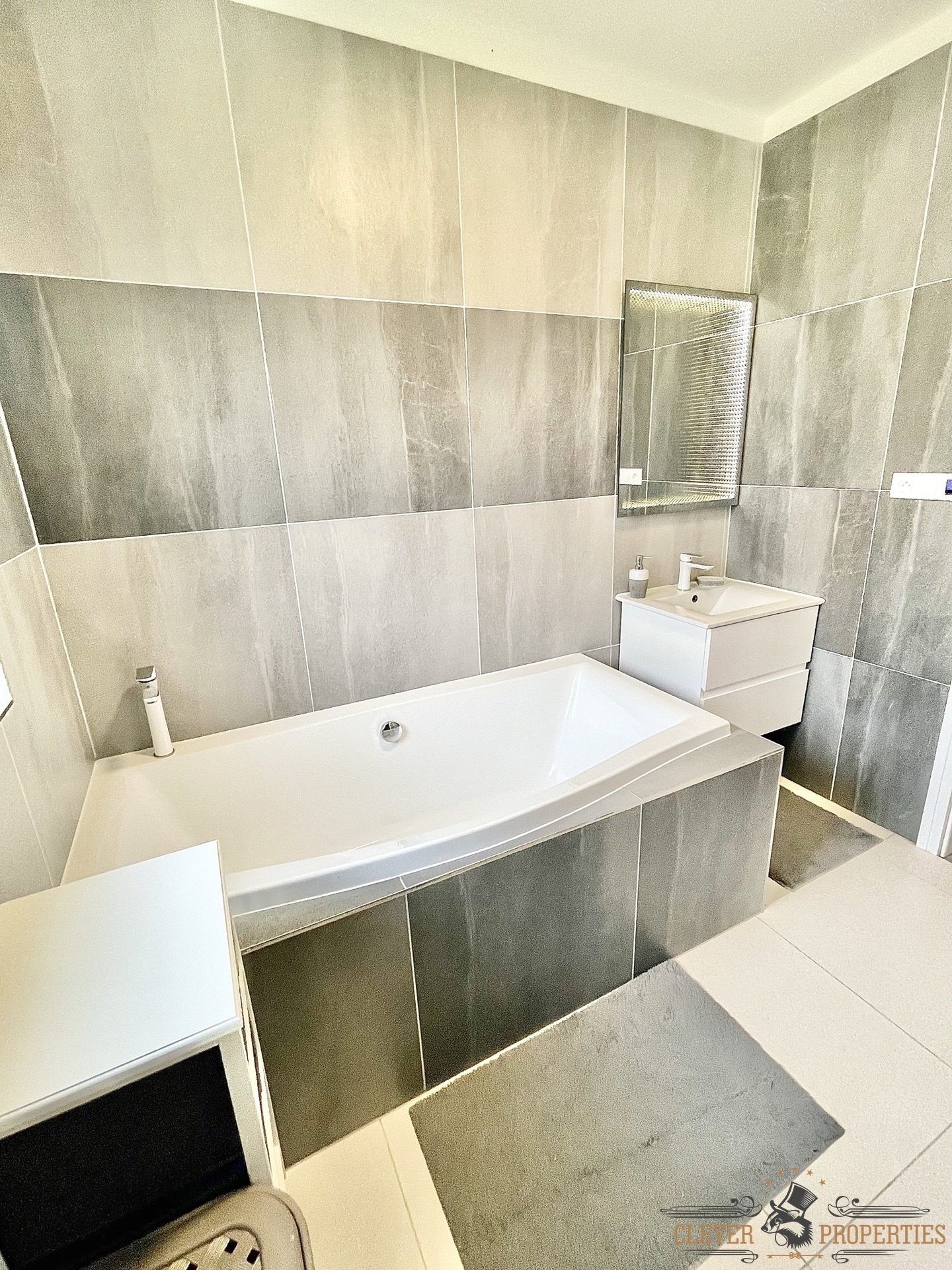 K dispozici je koupelna vybavená vanou i sprchovým koutem, samostatná toaleta, praktická šatna a technická místnost, která poskytuje dostatek prostoru pro uskladnění a technické zázemí domácnosti.