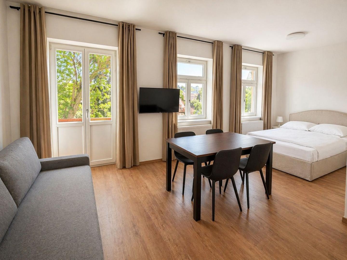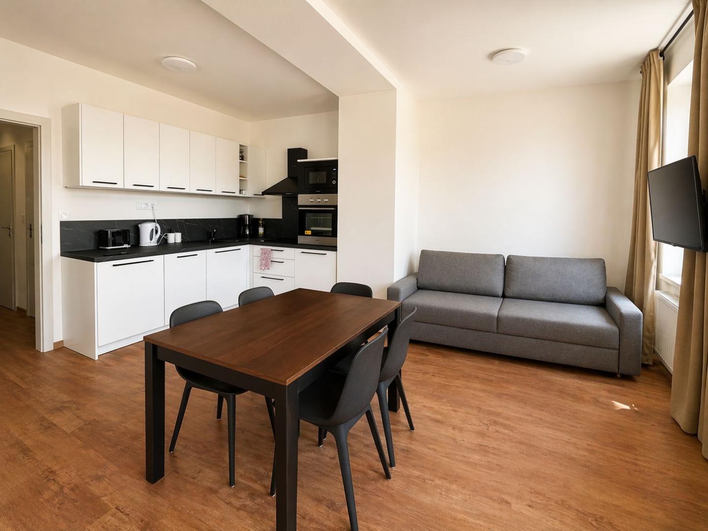 • plně vybavený byt (kuchyňská linka se spotřebiči, nábytek)
