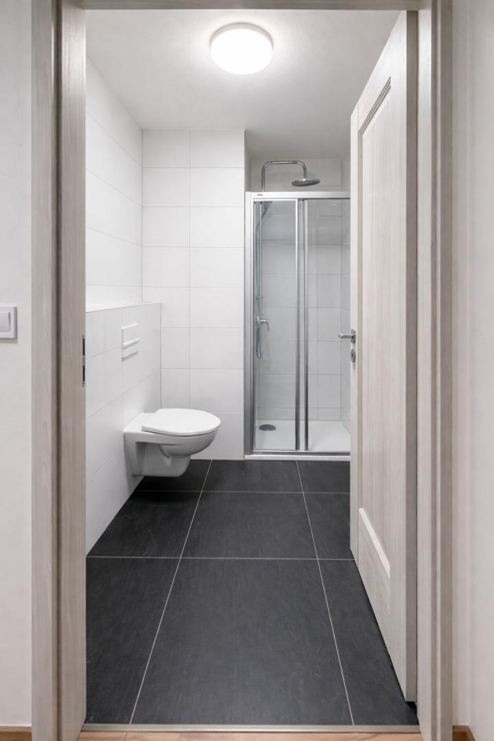 Byt o užitné ploše 32 m² se nachází v přízemí a jeho velkým benefitem je prostorná soukromá terasa, která náleží výhradně k tomuto bytu a poskytuje příjemné posezení v klidném prostředí zeleně.