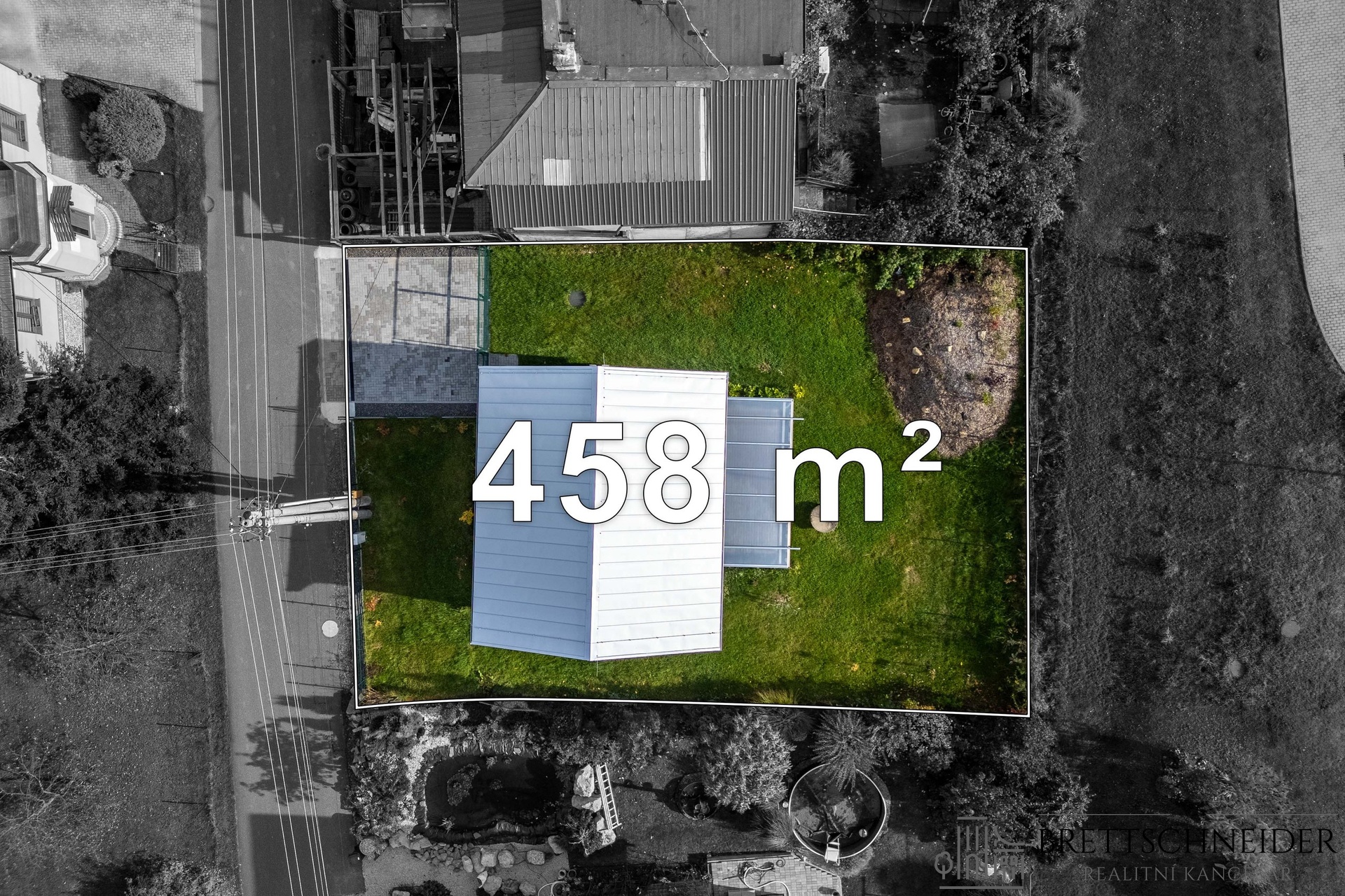 Celková plocha pozemku, vč. zastavěné části s terasou a zahradou je 458 m2. Samostatně zahrada má 377 m2.